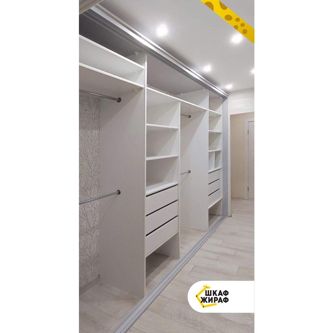 Индивидуальное наполнение с полками, выдвижными ящиками и штангами для одежды.