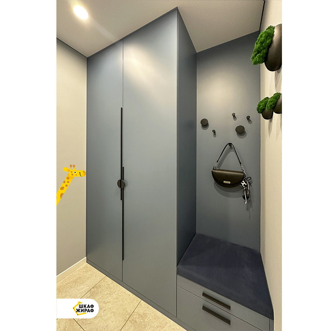 Корпус шкафов выполняем из ДСП разных цветов. Работаем с проверенными брендами Kronospan, Kronopol, Egger. Используем надежный алюминиевый профиль Modus. Предлагаем большой выбор материалов для фасада — зеркала, лакобель, лакомат, ДСП, кожа.