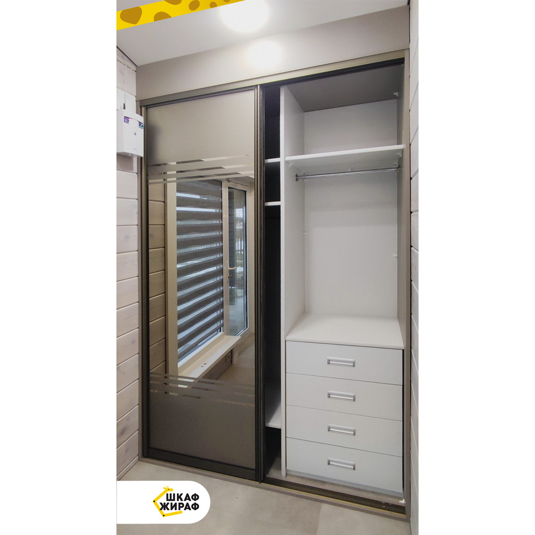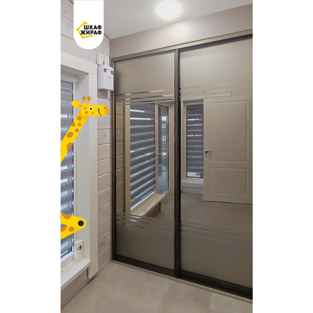 Двухдверный шкаф-купе с дверьми из бронзового зеркала с пескоструйным рисунком в профиле Modus цвета шампань.