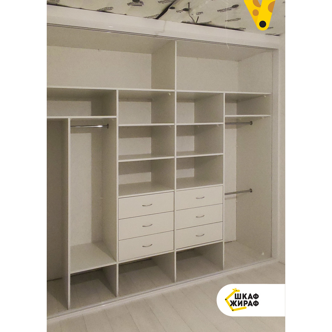 Стандартное и индивидуальное наполнение шкафов - полки, штанги, выдвижные ящики, корзины, пантографы и др. Можно выбрать любую комплектацию.