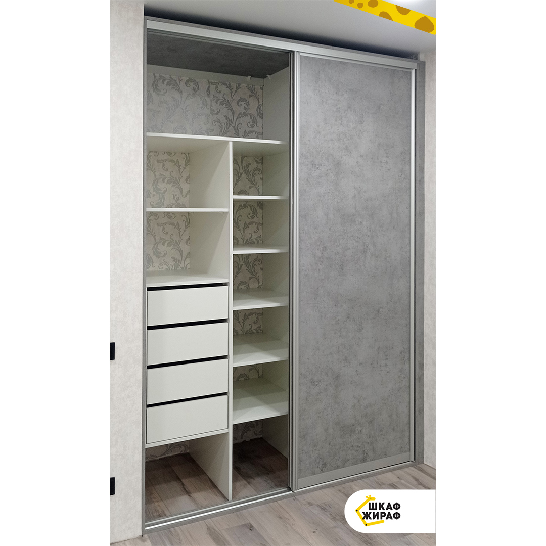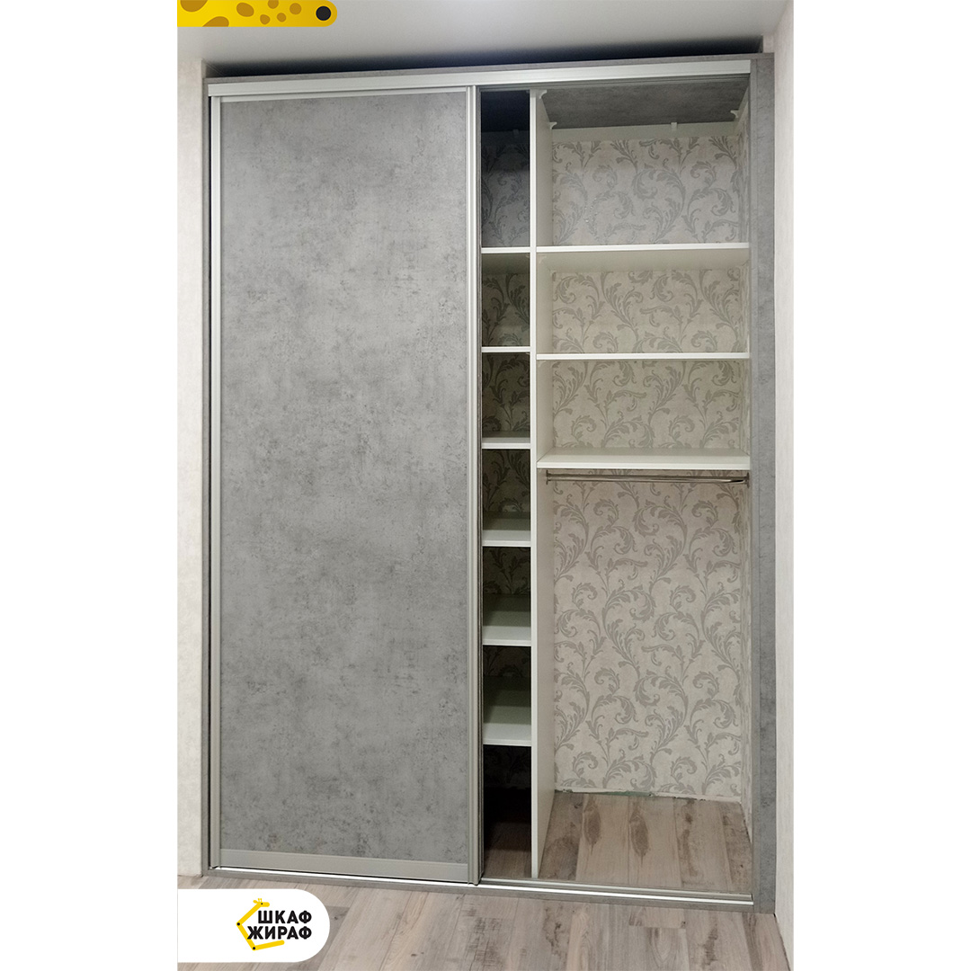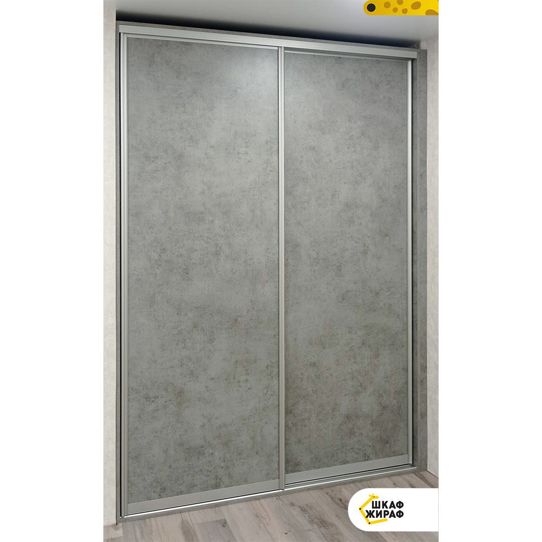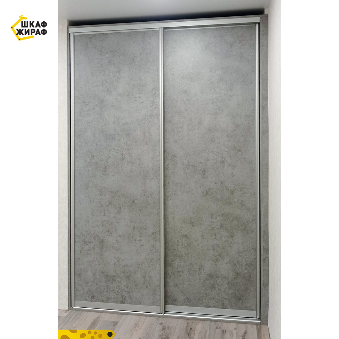 Встроенный шкаф-купе с дверьми из ДСП с декором под структуру бетона .