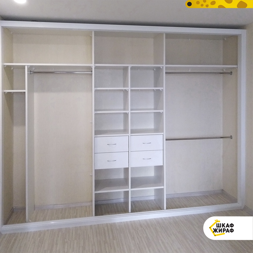 Стандартное и индивидуальное наполнение шкафов - полки, штанги, выдвижные ящики, корзины, пантографы и др. Можно выбрать любую комплектацию.