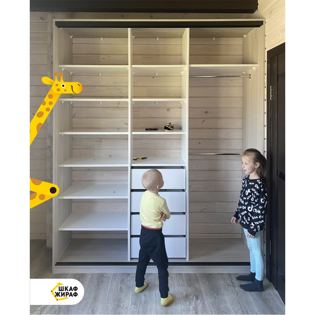 Стандартное и индивидуальное наполнение шкафов - полки, штанги, выдвижные ящики, корзины, пантографы и др. Можно выбрать любую комплектацию.