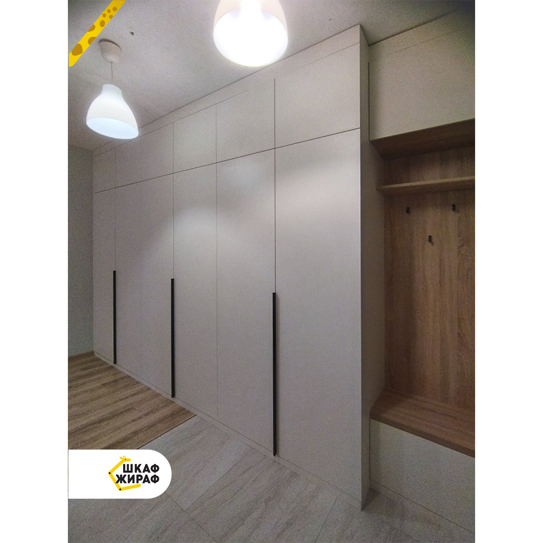Четырехметровая прихожая со встроенными распашными шкафами. Все фасадные петли с доводчиком.