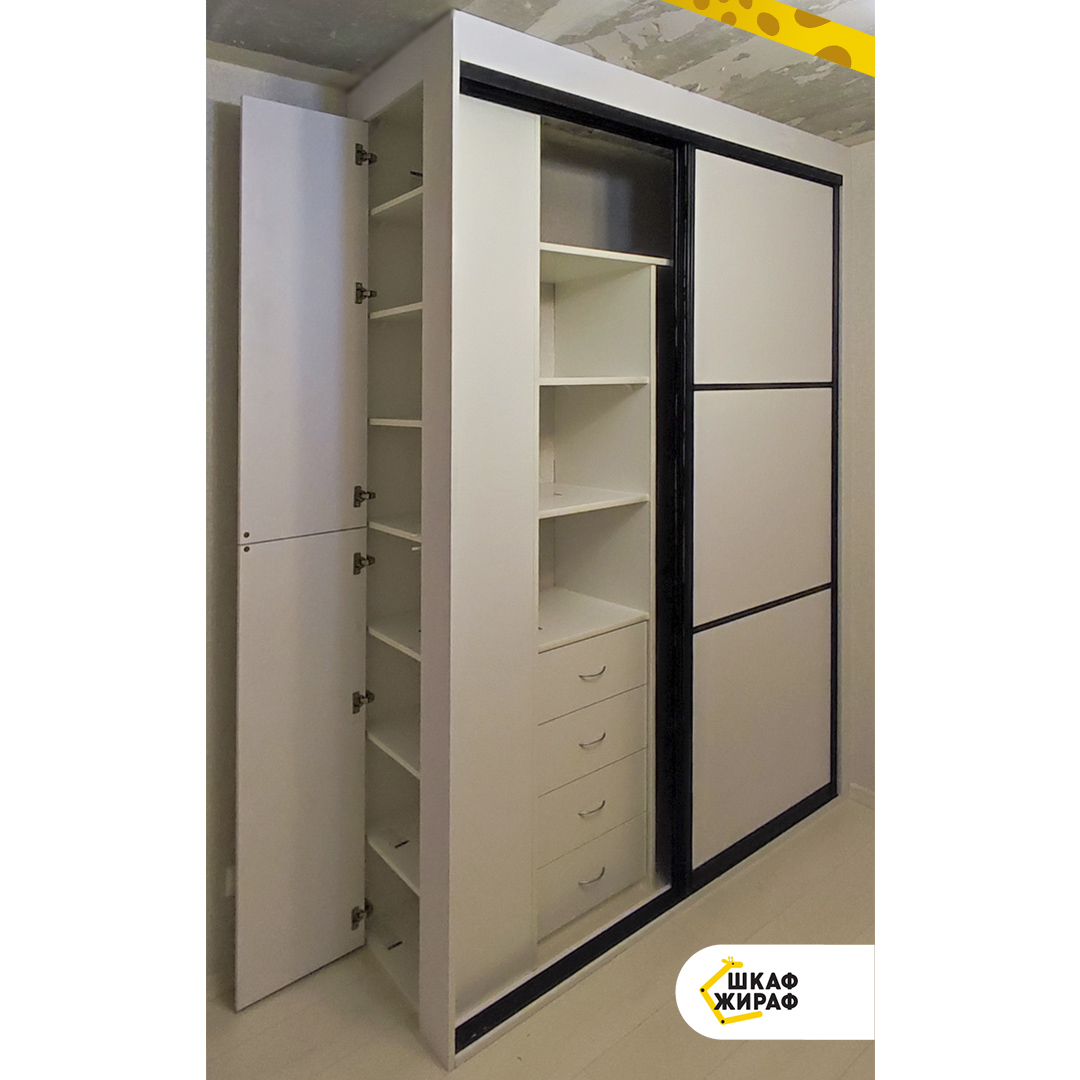 Двухдверный шкаф-купе с распашным сегментом сбоку (открытие по нажатию с помощью системы Tip-on).
