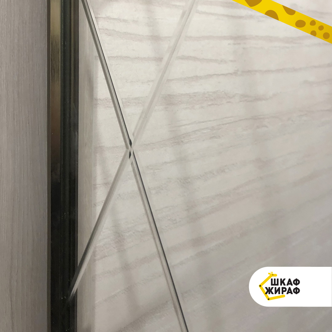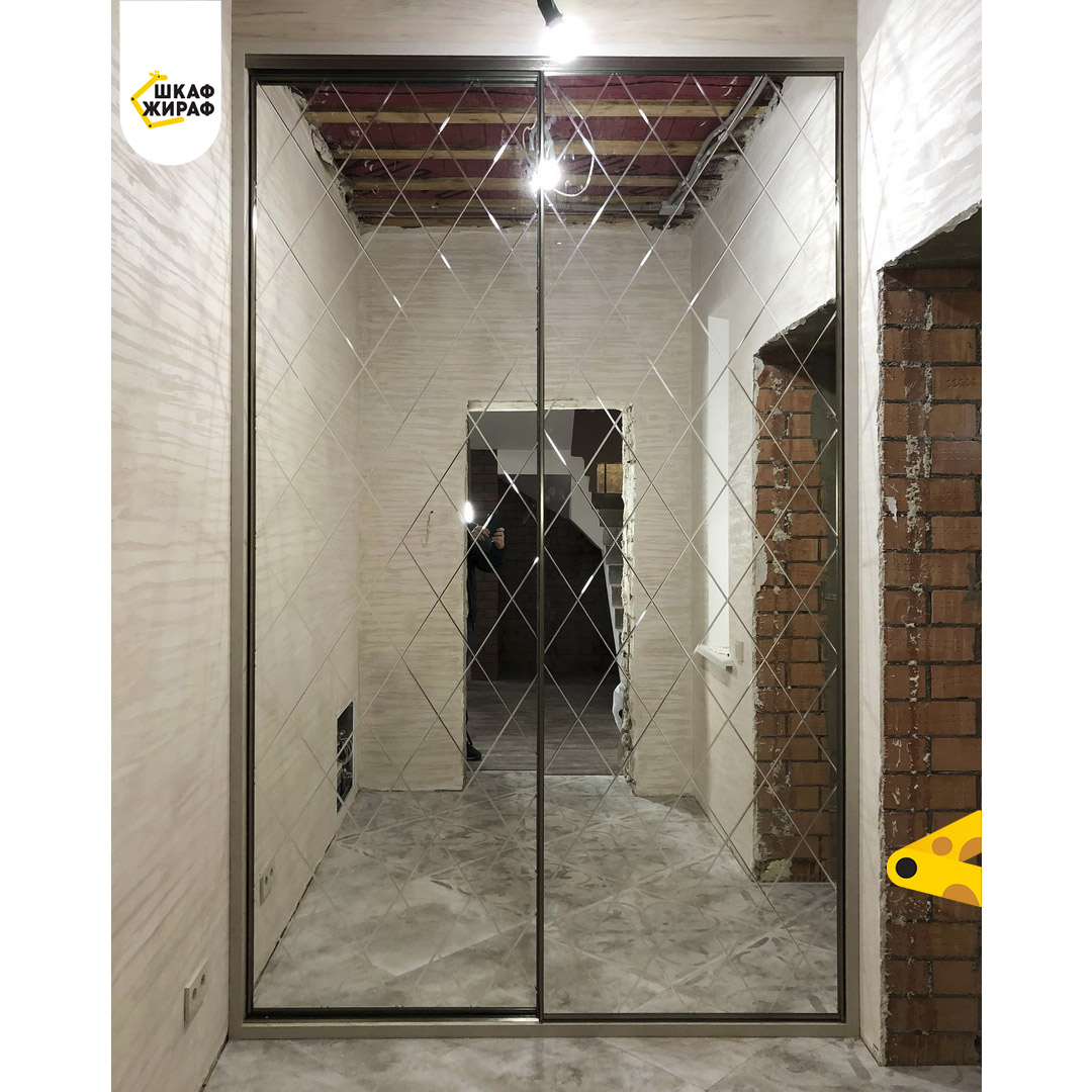 Двухдверный встроенный шкаф-купе с дверьми из зеркала с алмазной гравировкой в узком профиле Modus.
