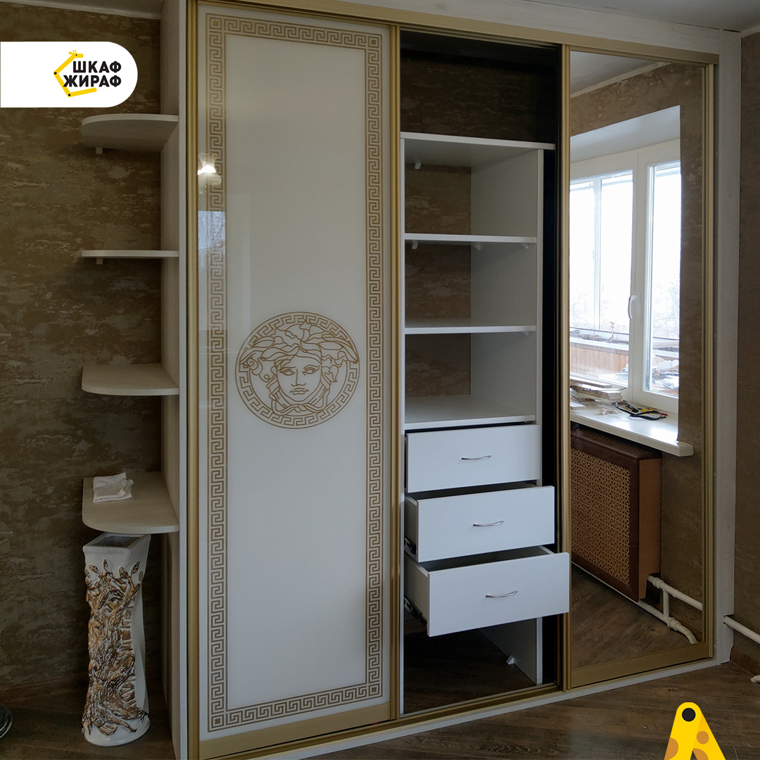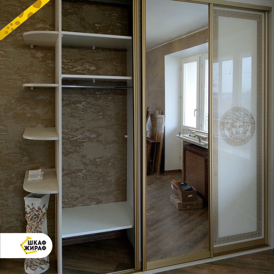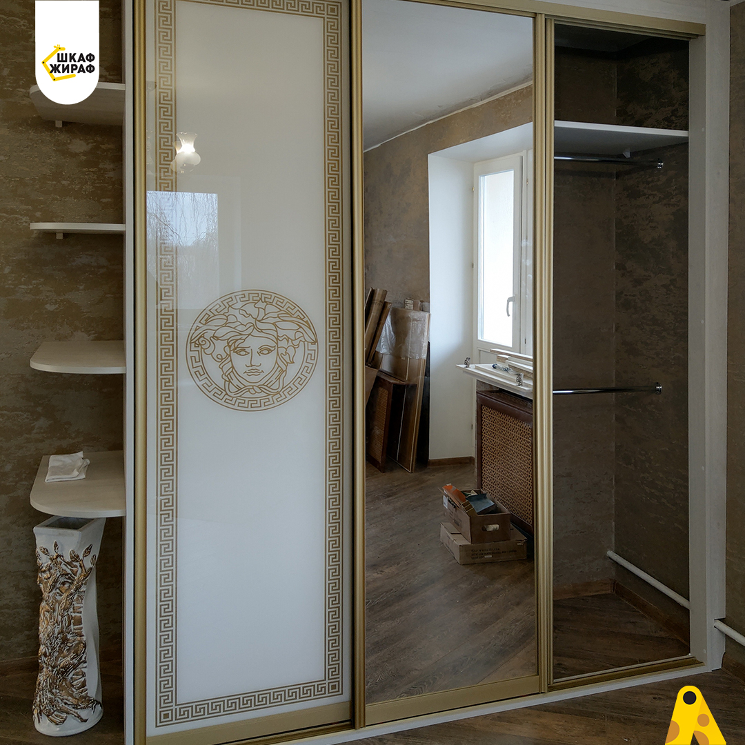 Шкаф-купе в греческом стиле с крашеным лакобелем.