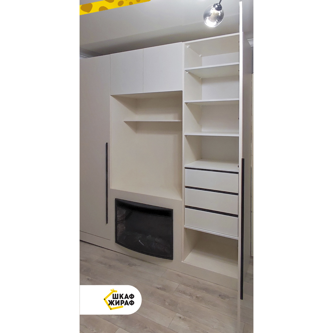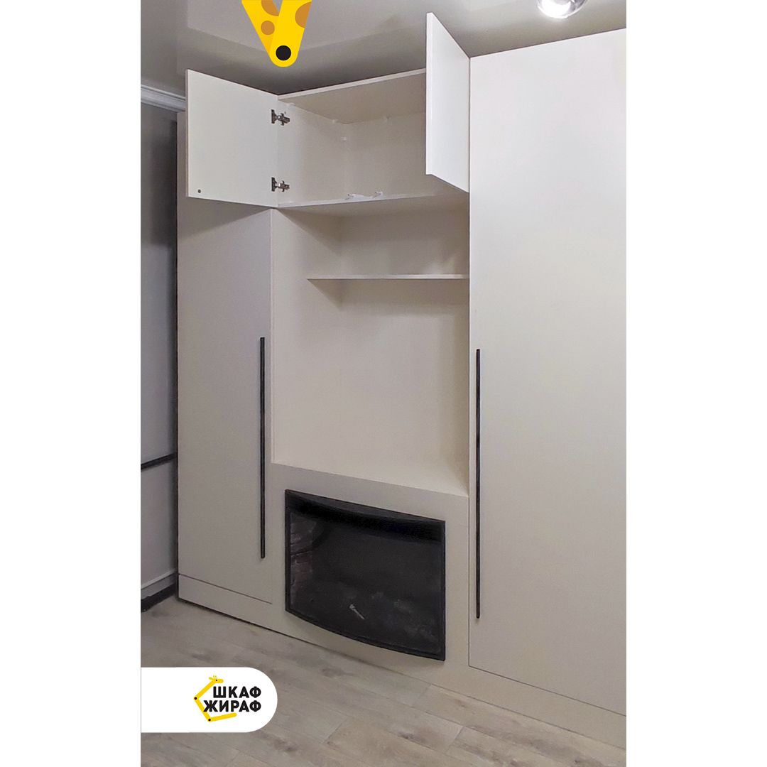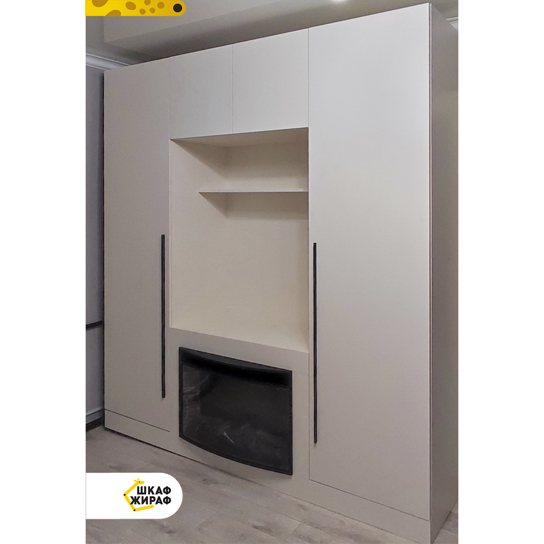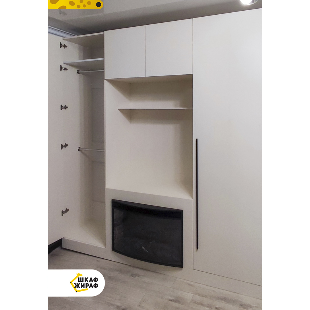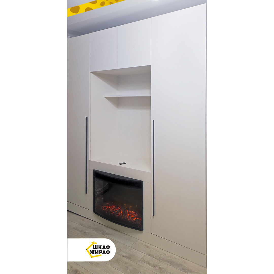 Светлый распашной шкаф со встроенным камином. Уютная атмосфера в комнате обеспечена.