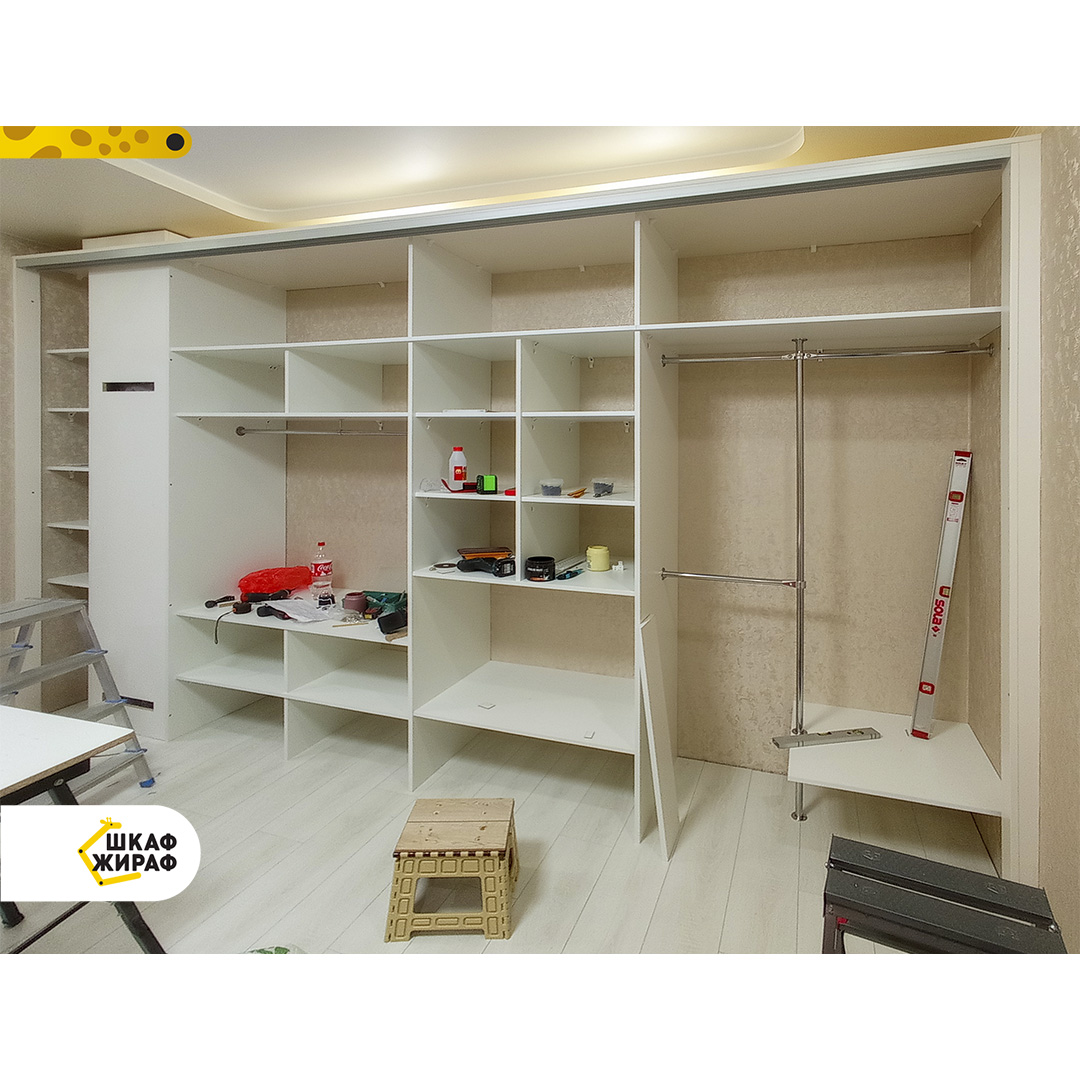 По индивидуальному проекту с полками, штангами для одежды и выдвижными ящиками на шариковых направляющих полного выдвижения.