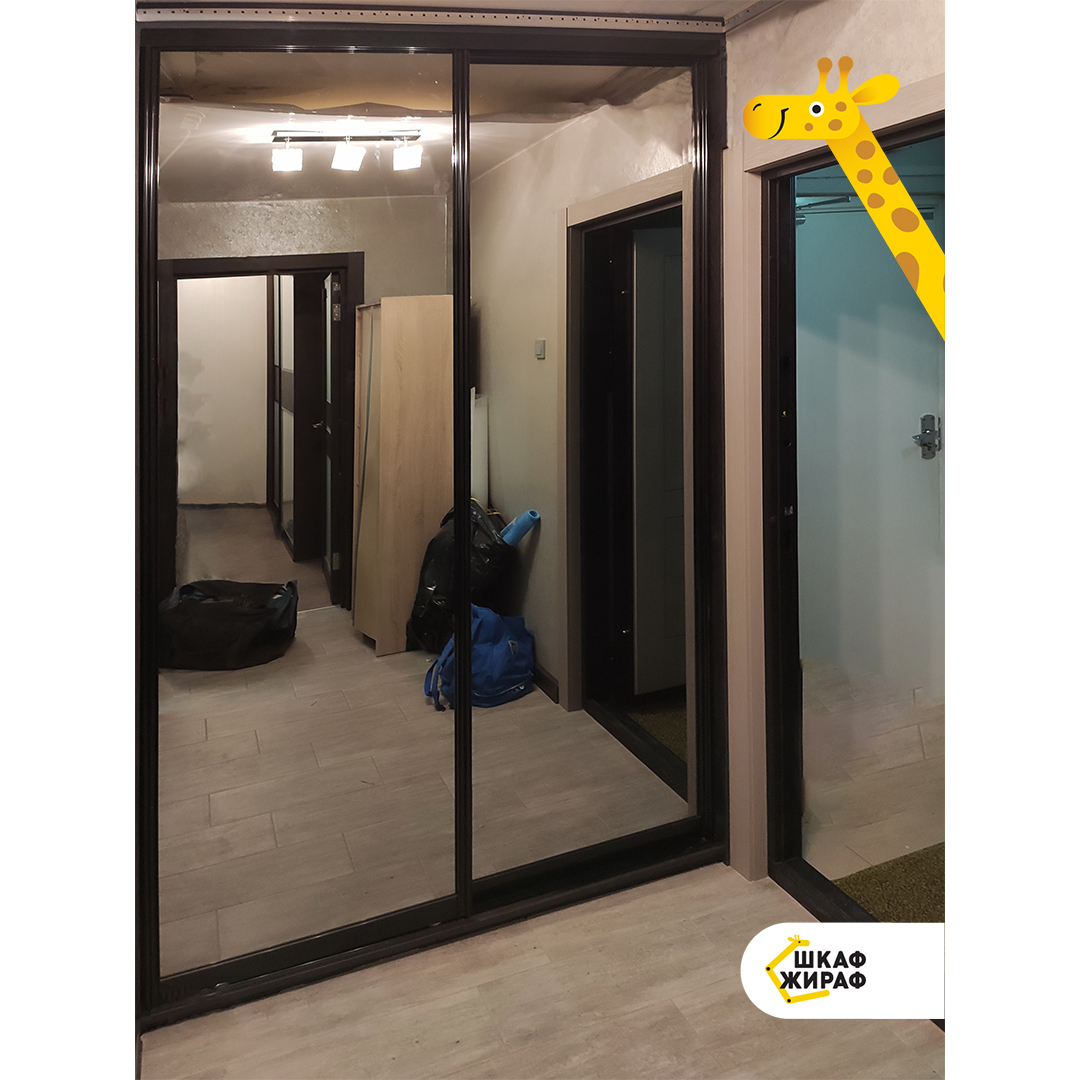 Двухдверный встроенный в нишу шкаф-купе с фасадом из графитового зеркала в черном закрытом профиле Modus:
