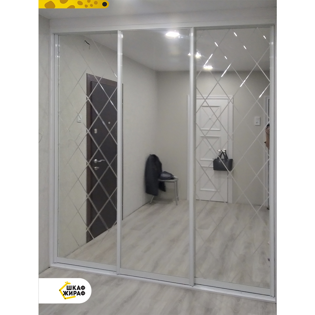 Мини-гардеробная с зеркалом и алмазной гравировкой на дверях-купе.