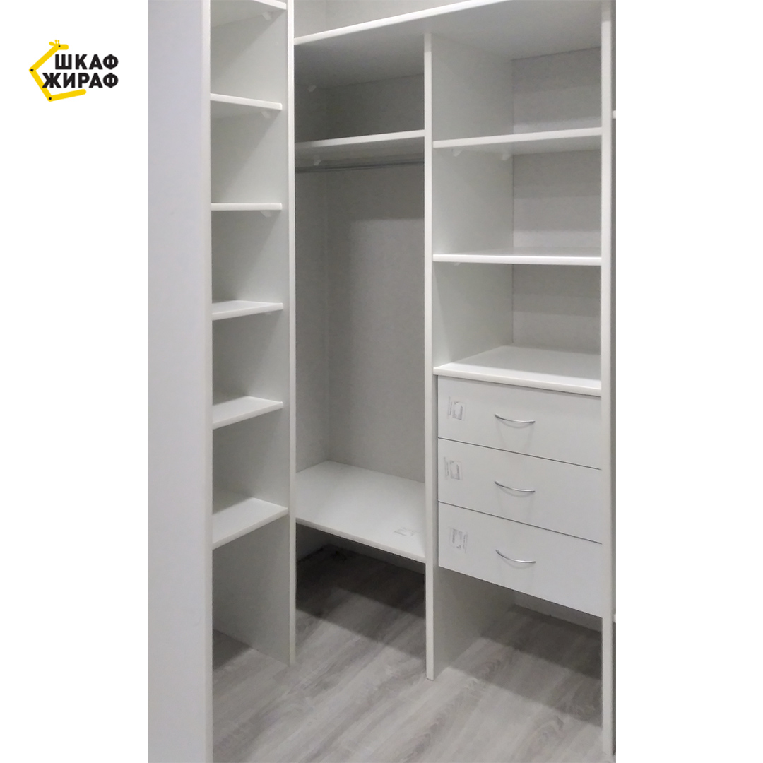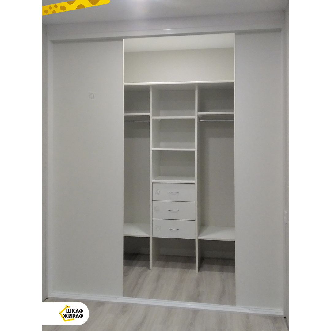 Три двери — индивидуальное П-образное наполнение с полками, штангами для одежды и выдвижными ящиками.