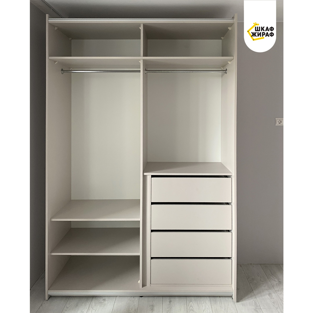 Справа  — штанга для короткой одежды и выдвижные ящики.
