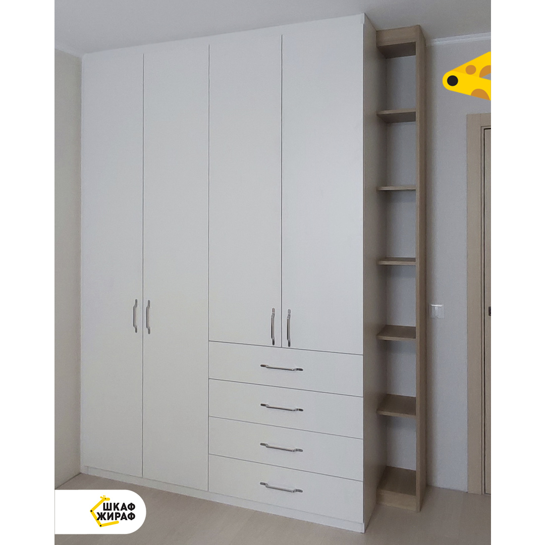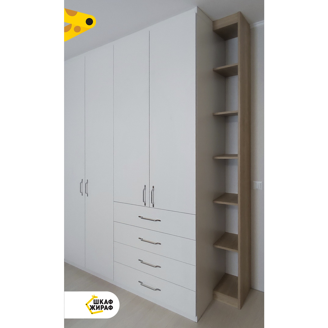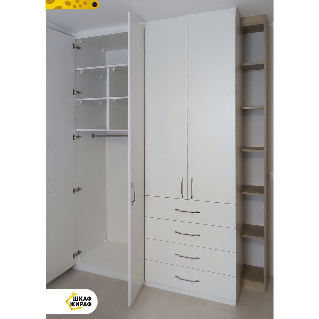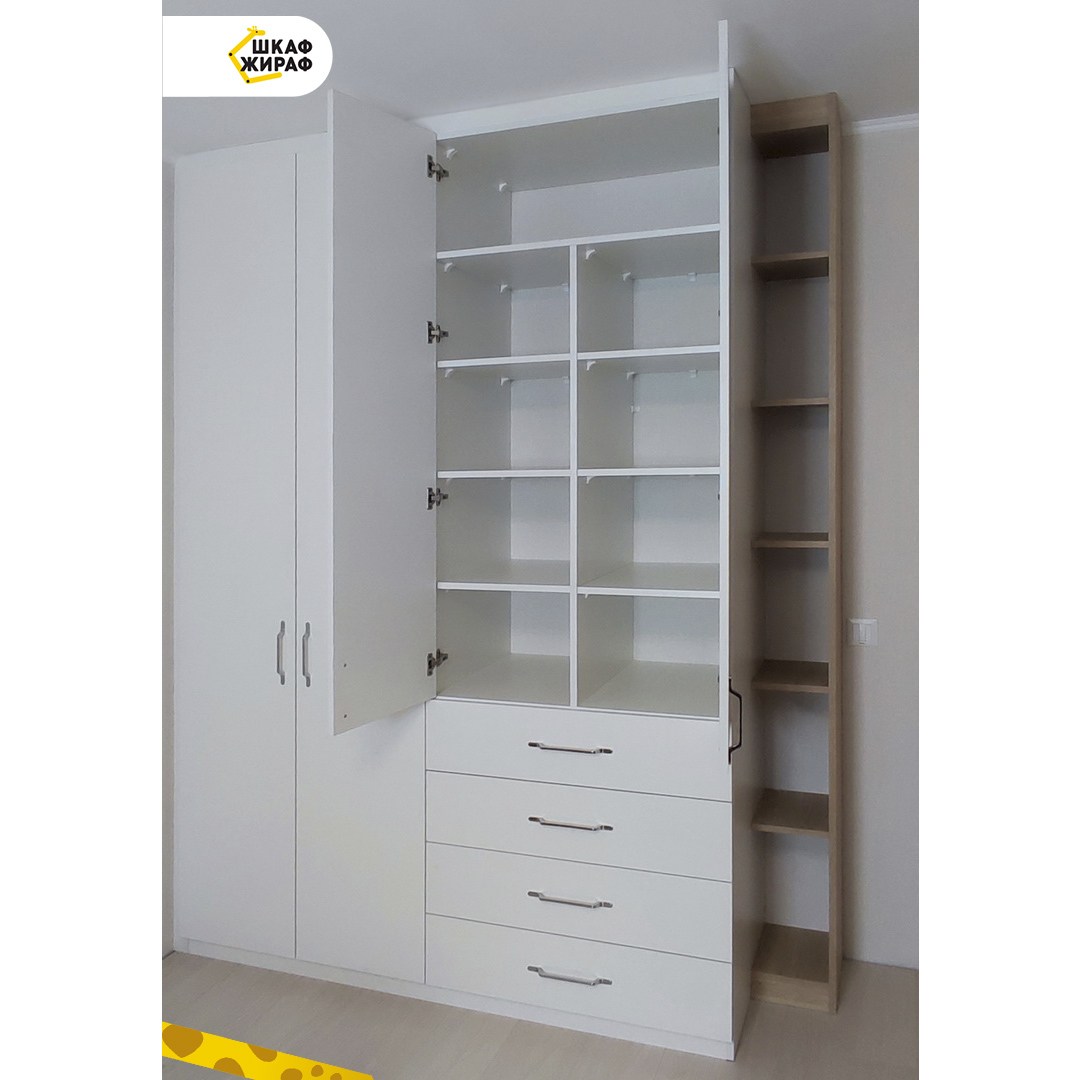 По индивидуальному проекту с большим количеством полок, штангой для одежды и выдвижными ящиками.