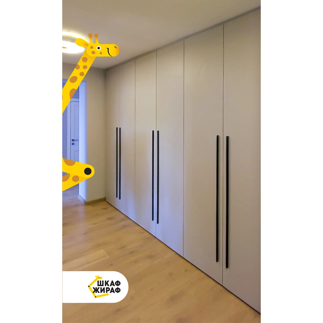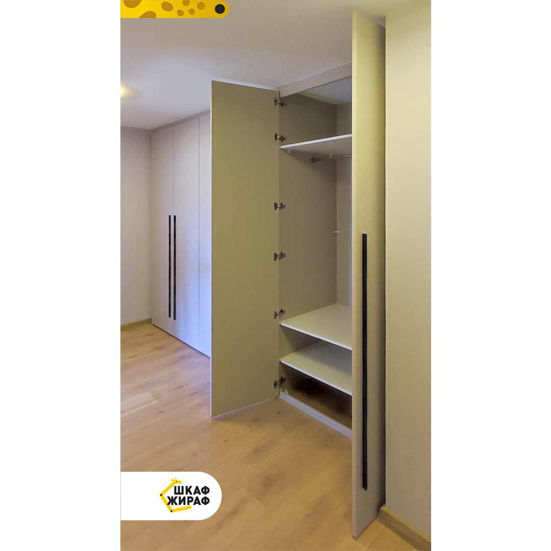 Трехметровый шкаф с распашными фасадами из ДСП на петлях Blum.