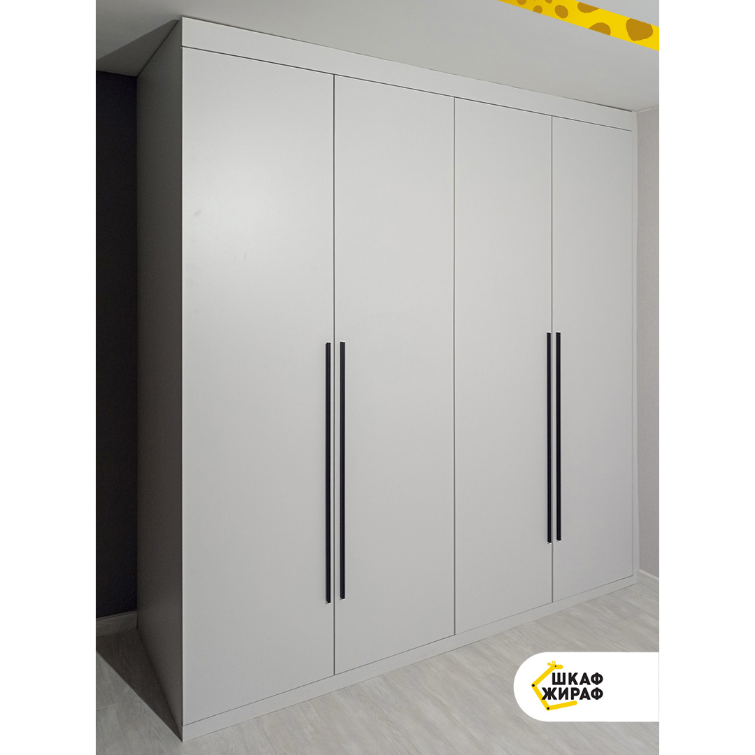 Распашной шкаф с фасадами из ДСП цвета серого шелка и контрастными черными ручками Piano.
