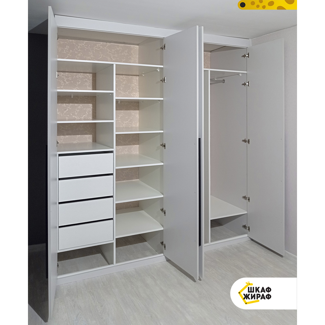 По индивидуальному проекту с полками, штангами для длинной и короткой одежды, выдвижными ящиками на шариковых направляющих полного выдвижения.