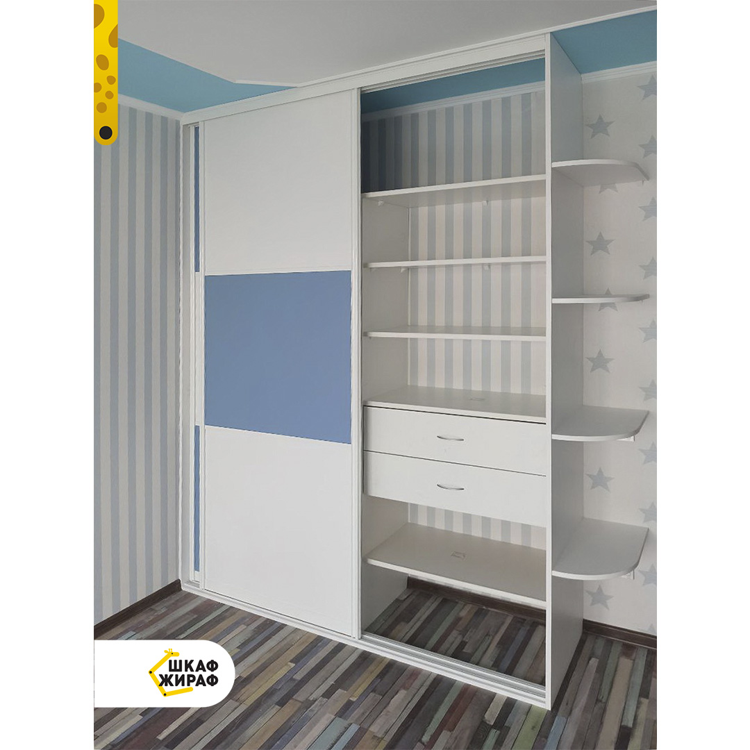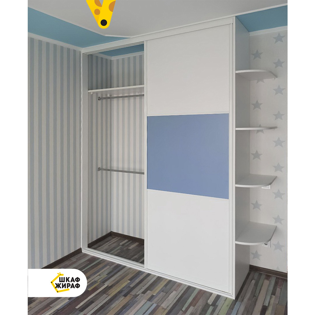Яркий шкаф из двух цветов лДСП в белом профиле Modus в светлой детской комнате.
