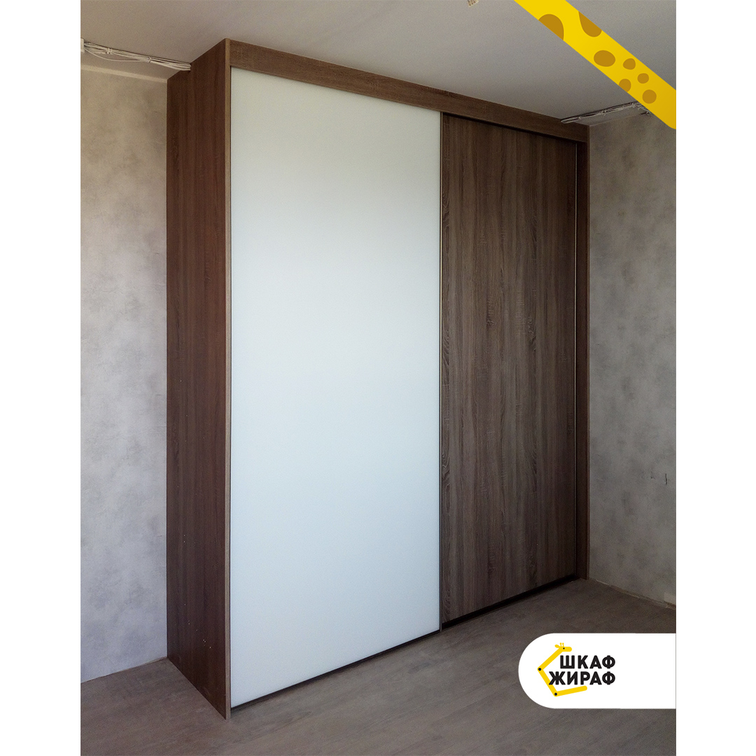Двухдверный полувстроенный шкаф-купе с боковой стенкой.
