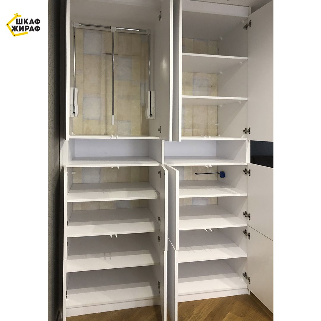 Стандартное и индивидуальное наполнение шкафов - полки, штанги, выдвижные ящики, корзины, пантографы и др. Можно выбрать любую комплектацию.