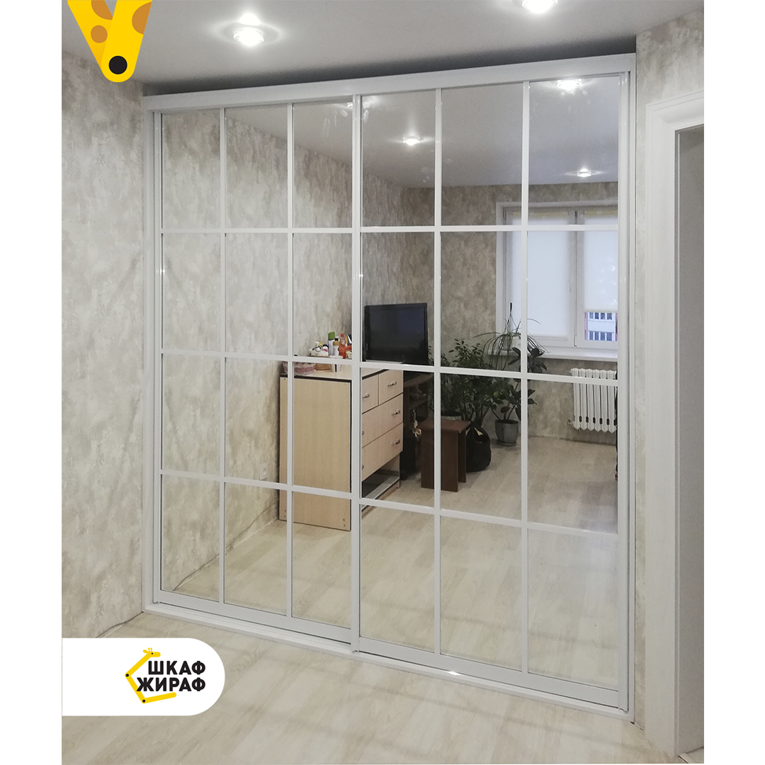 Шкаф-купе с разделенным зеркальными дверьми в белом профиле Modus.