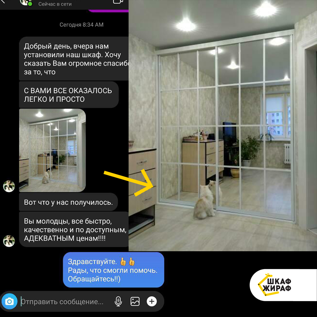 Без предоплаты! Оплата производится после установки шкафа-купе наличными. Дизайн, замер, доставка, подъем на этаж, монтаж мебели — бесплатно.