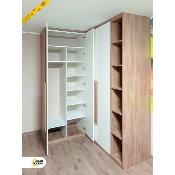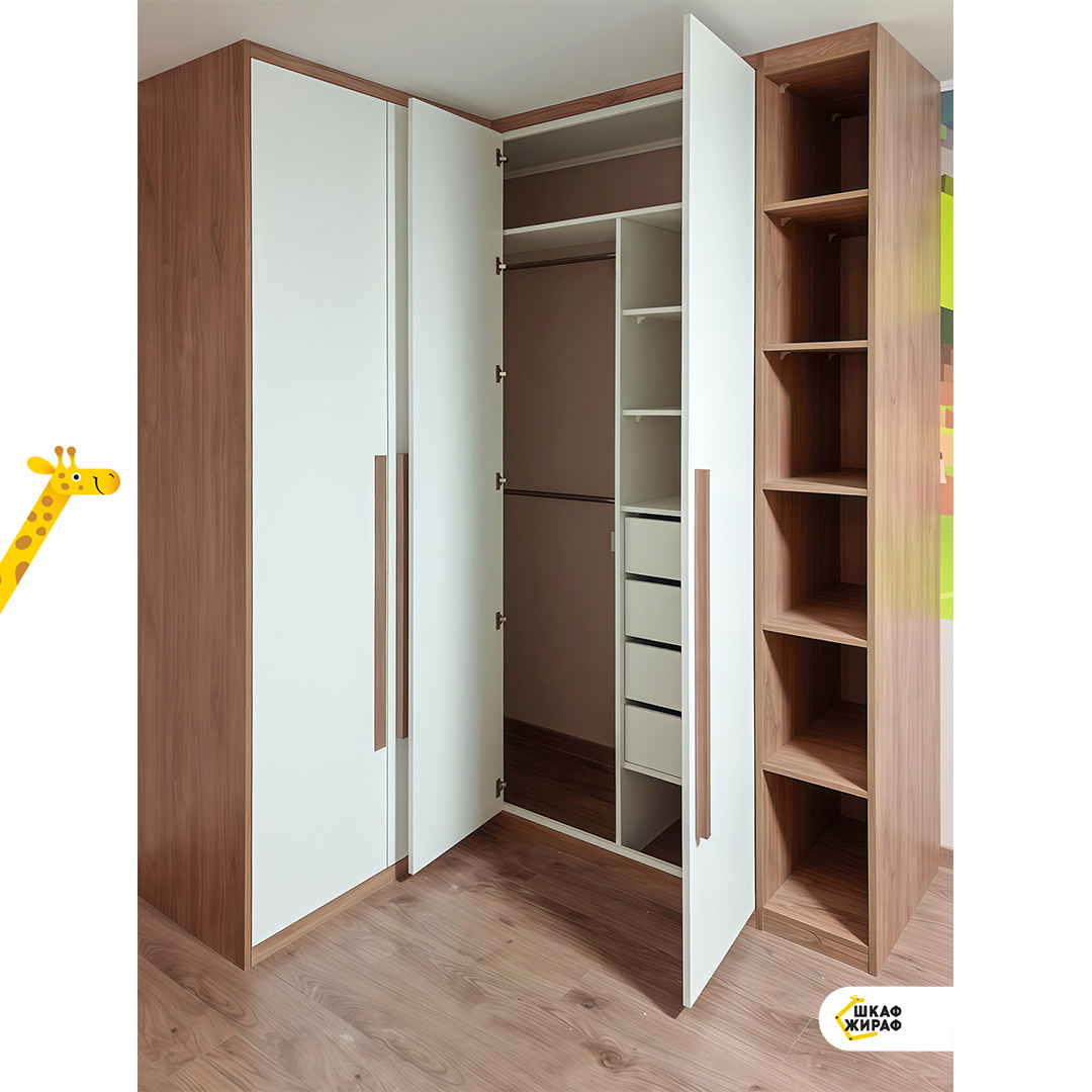 По индивидуальному проекту со штангами для короткой и длинной одежды, полками и выдвижными ящиками.