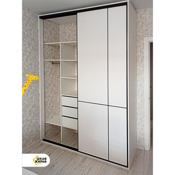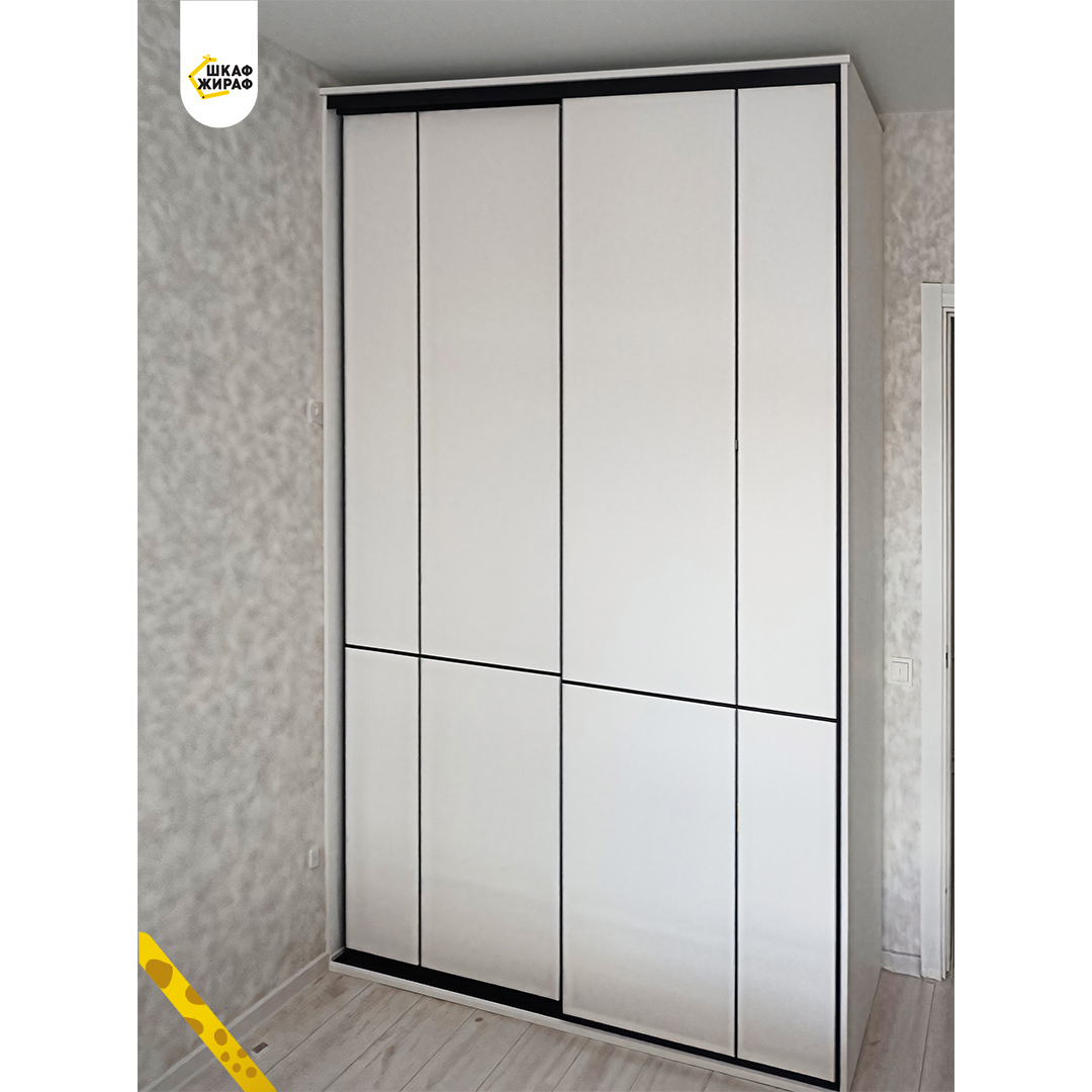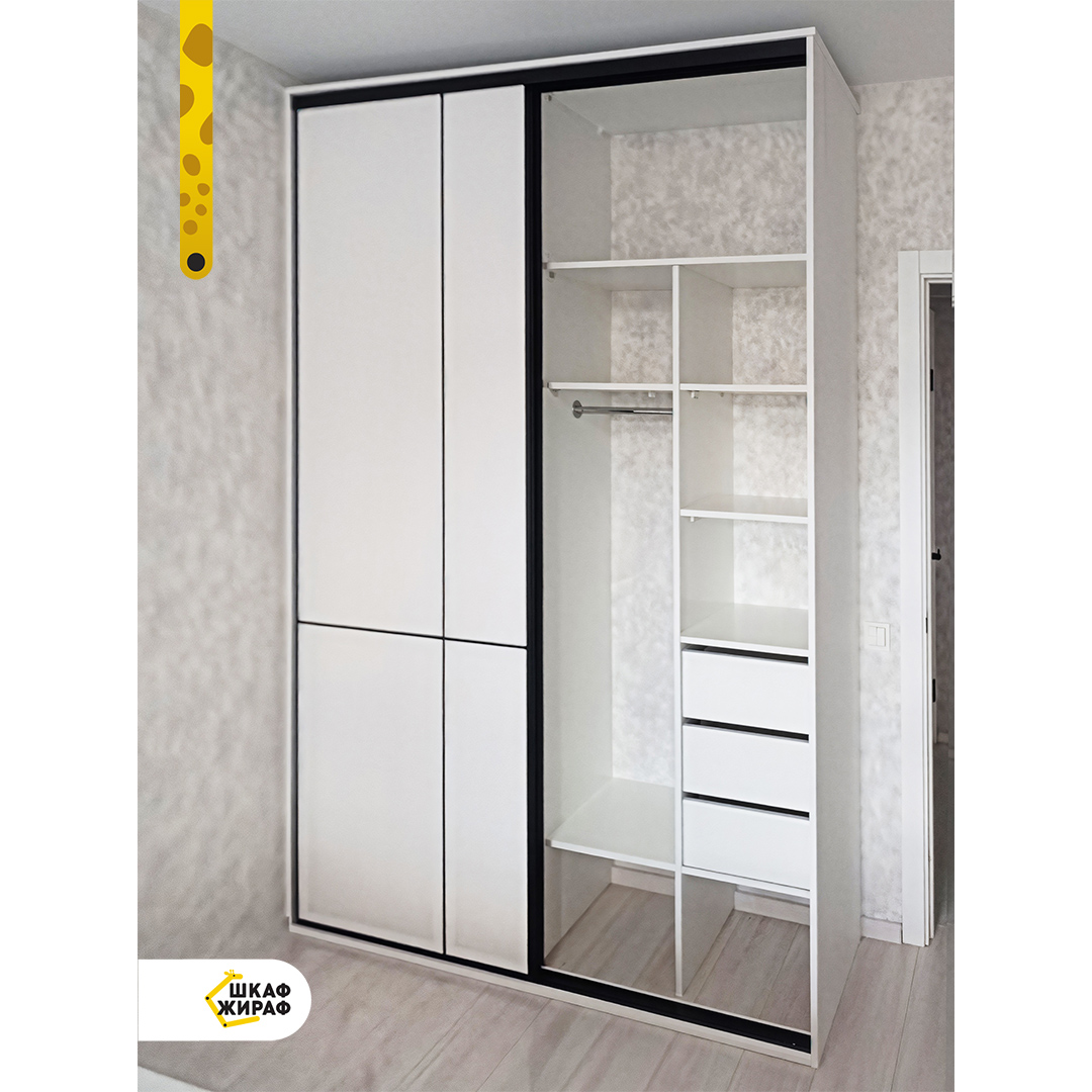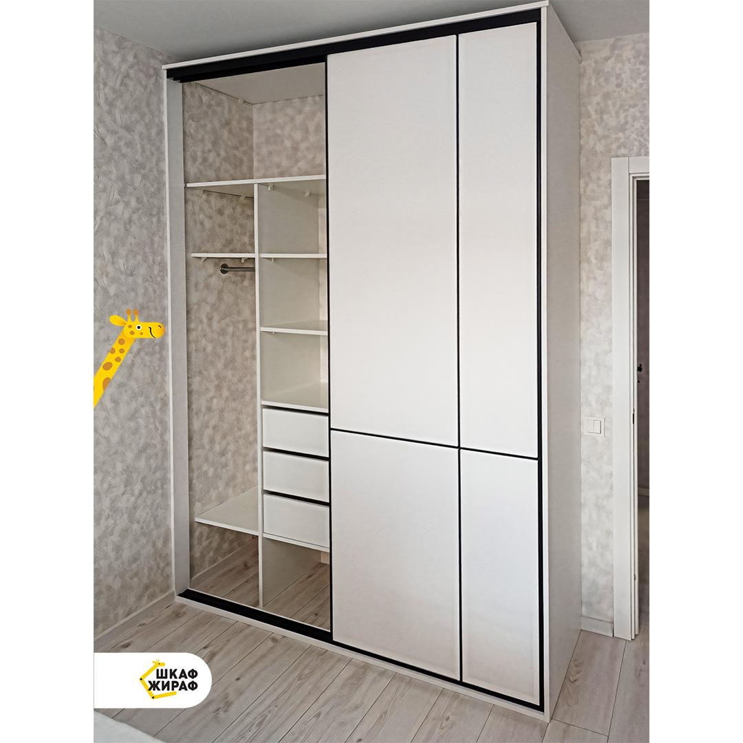 Полувстроенный шкаф-купе в цвете Белый Альпийский с алюминиевыми разделениями в профиле Черный браш