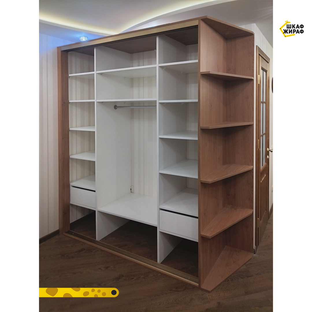 По индивидуальному проекту с полками, выдвижными ящиками и штангой для одежды.