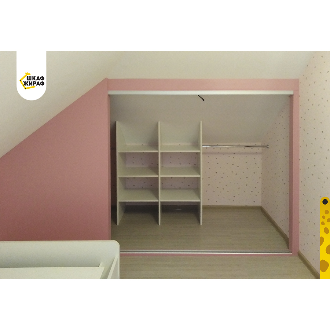 Вот какую мими-гардеробную (ой, мини :) Шкаф-Жираф сделал для маленькой девочки в ее уютной комнате.