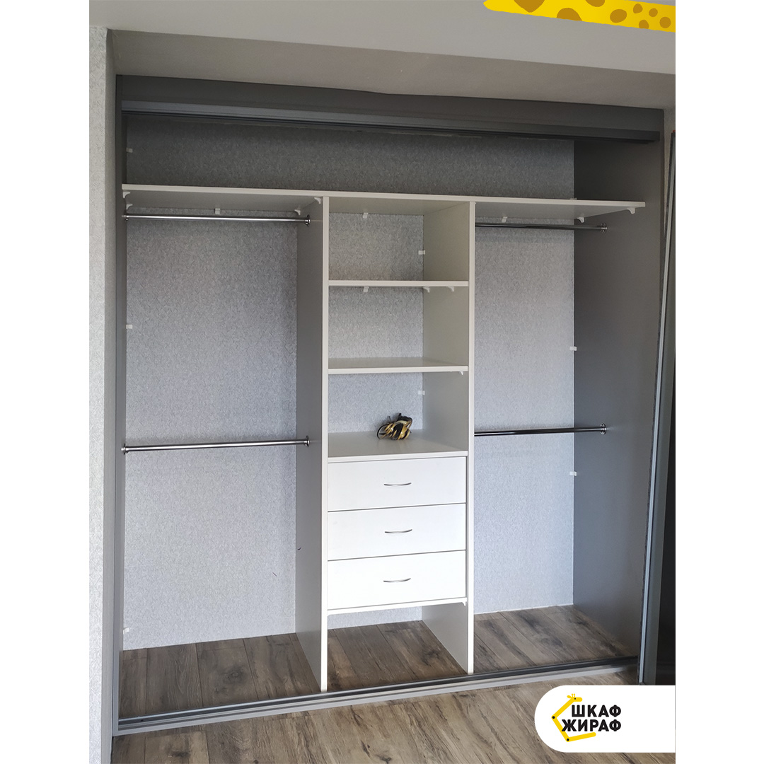 Стандартное и индивидуальное наполнение шкафов - полки, штанги, выдвижные ящики, корзины, пантографы и др. Можно выбрать любую комплектацию.