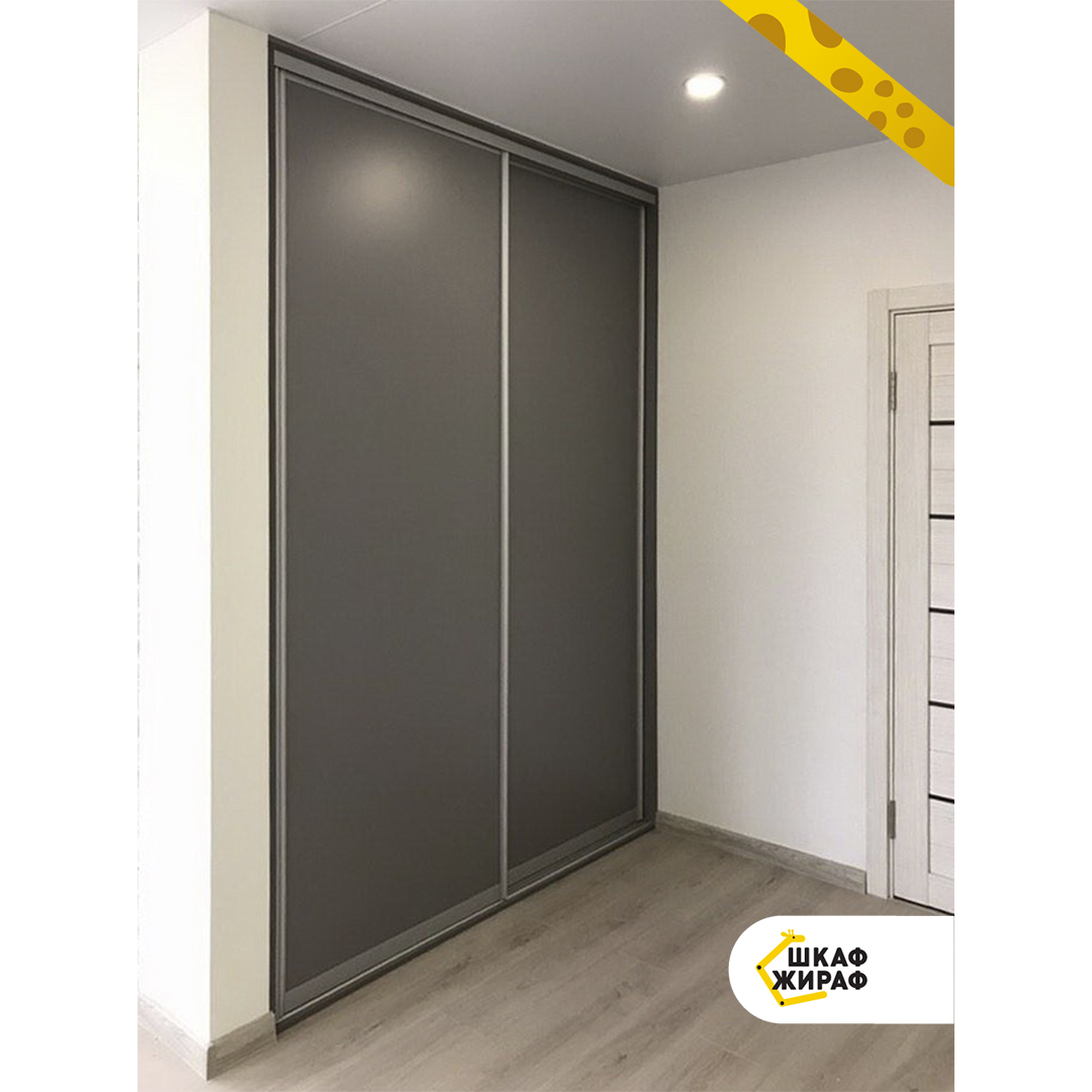 Встроенный одноцветный шкаф-купе (с крышей и боковой стенкой) в стиле «Минимализм» с фасадом из лДСП.