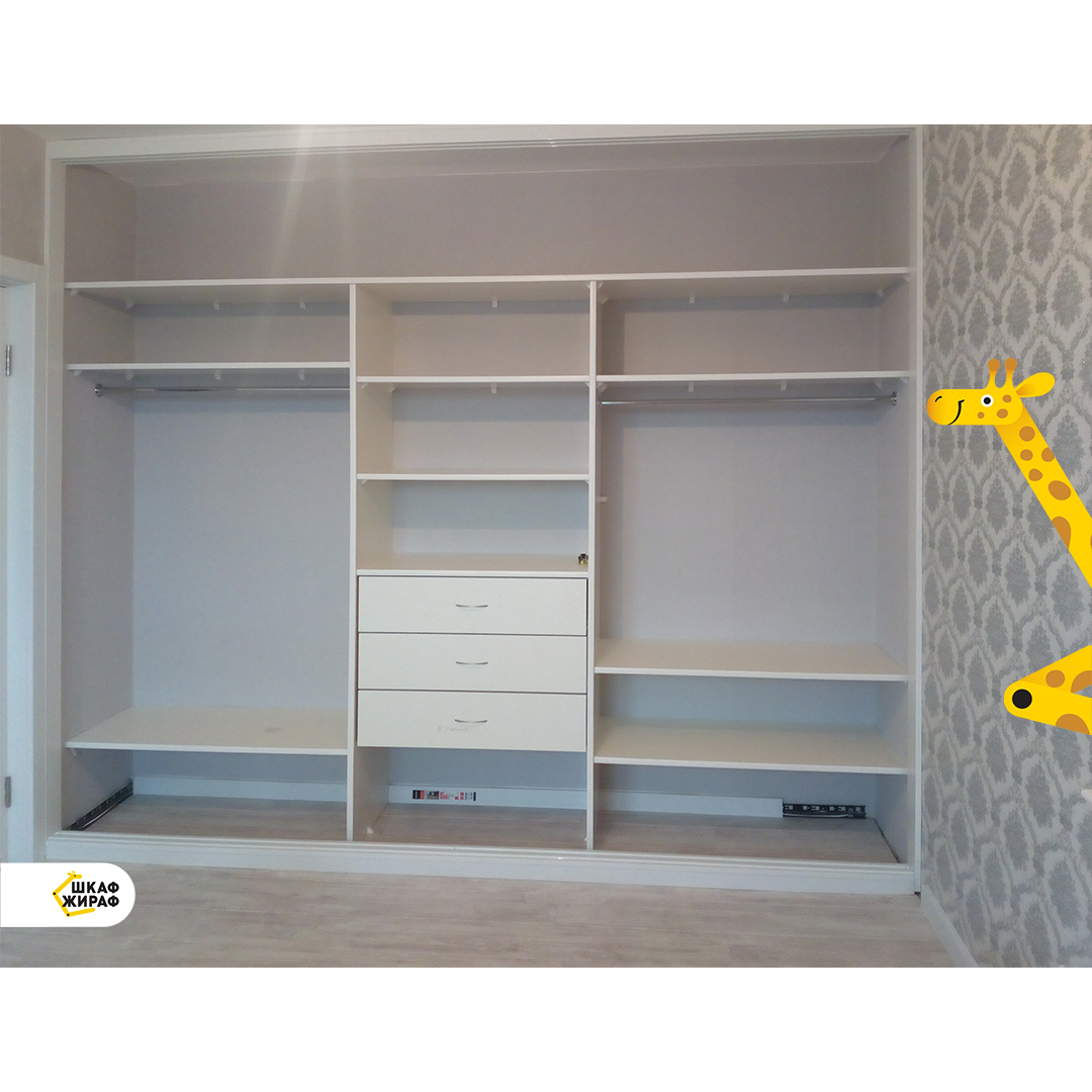 Стандартное и индивидуальное наполнение шкафов - полки, штанги, выдвижные ящики, корзины, пантографы и др. Можно выбрать любую комплектацию.