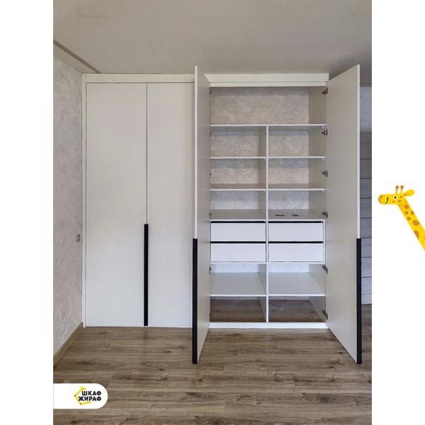По индивидуальному проекту со штангой для одежды длинной одежды, полками и выдвижными ящиками.