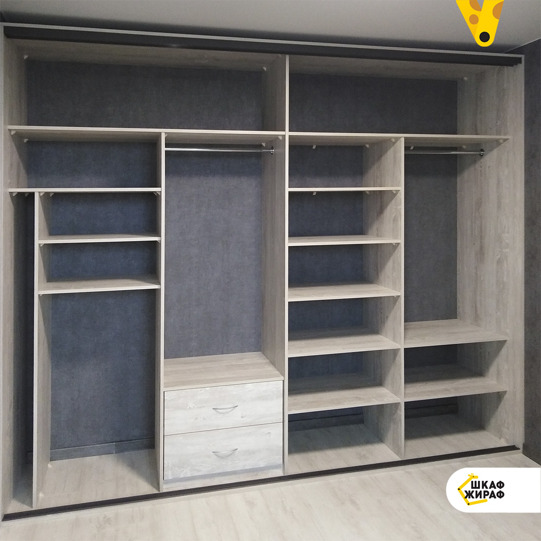 Стандартное и индивидуальное наполнение шкафов - полки, штанги, выдвижные ящики, корзины, пантографы и др. Можно выбрать любую комплектацию.