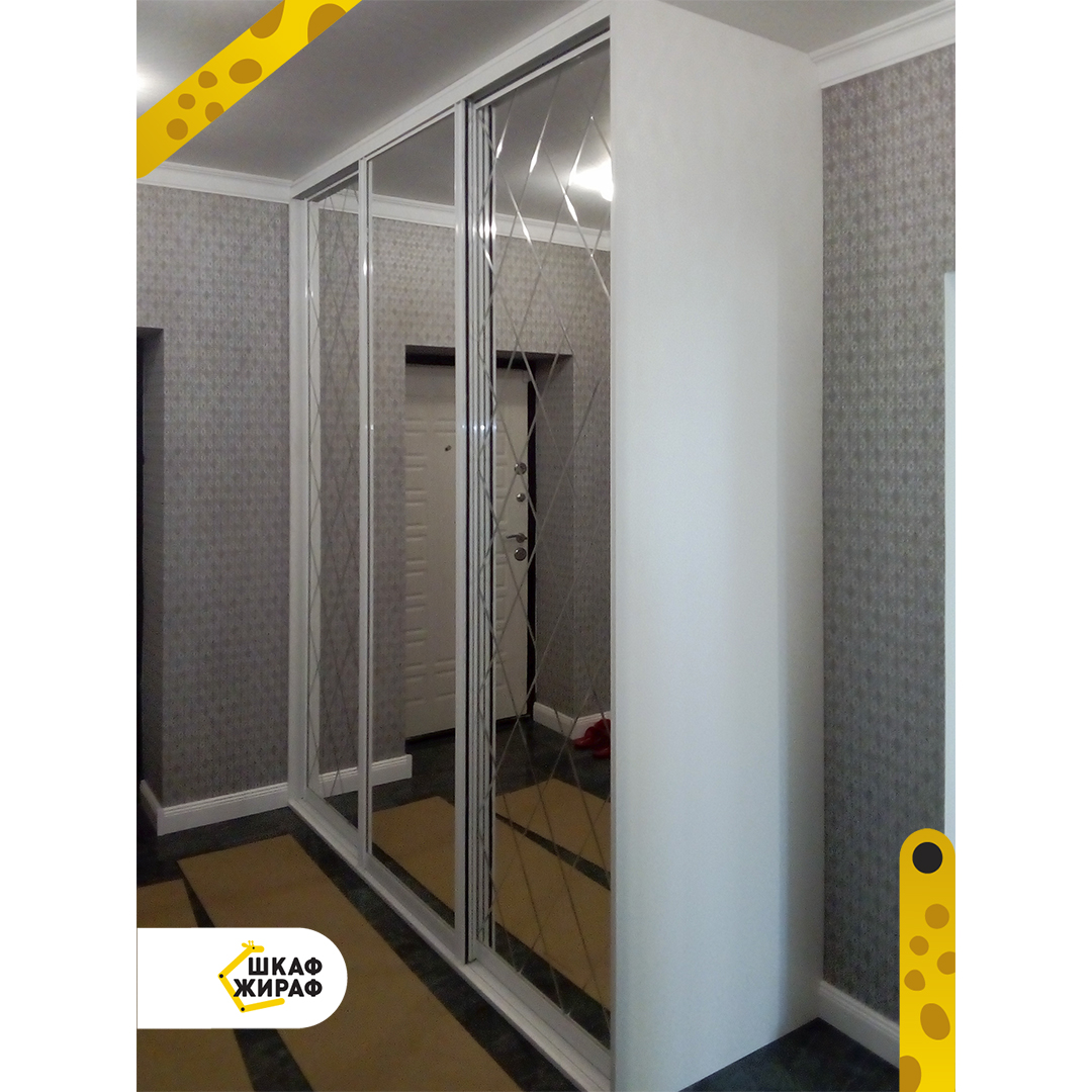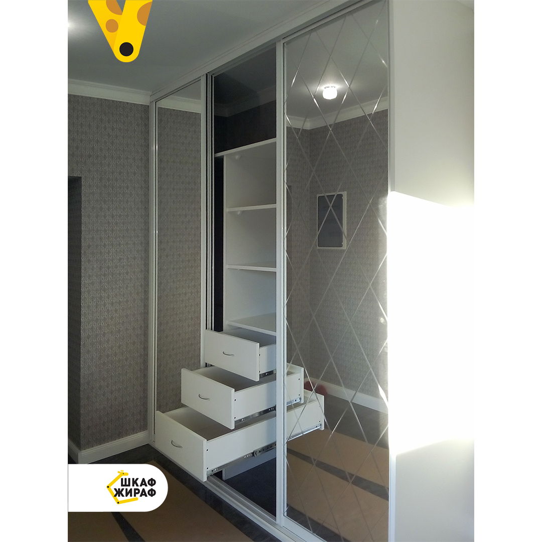 Трехдверный шкаф-купе с алмазной гравировкой на зеркале и выдвижными ящиками на шариковых направляющих полного выдвижения.