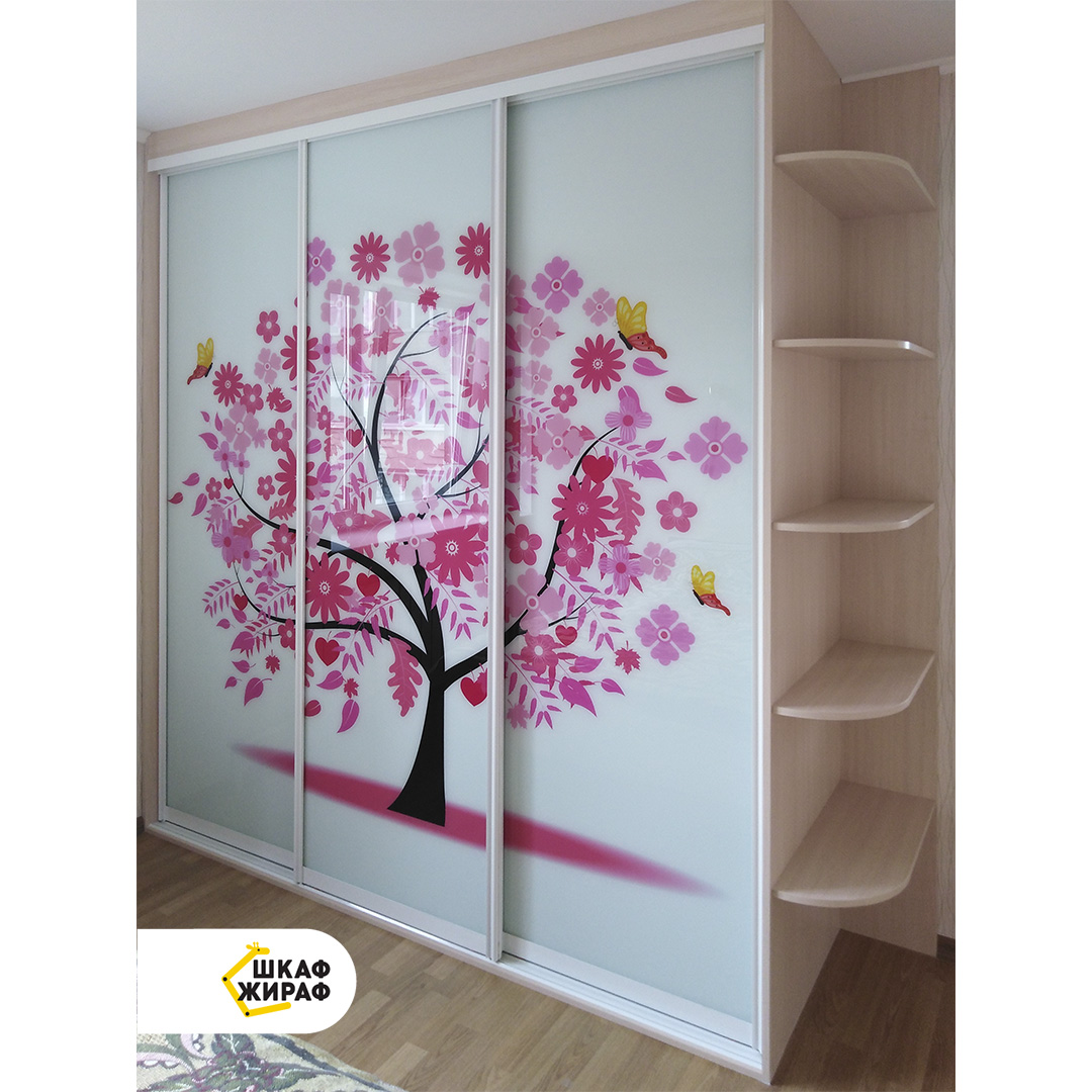 Шкаф-купе с яркой иллюстрацией — волшебной сакурой.