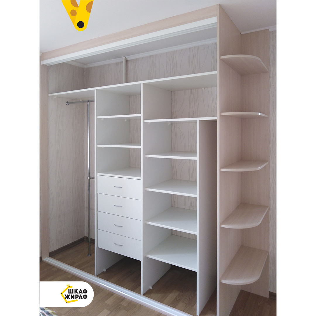 Справа от шкафа — открытый радиусные полки.
