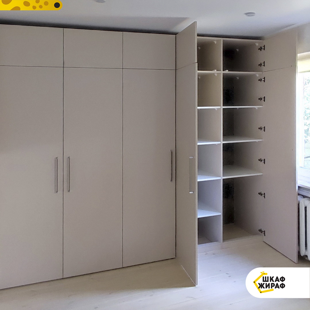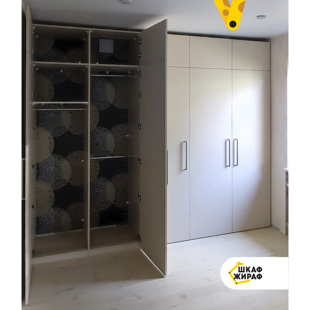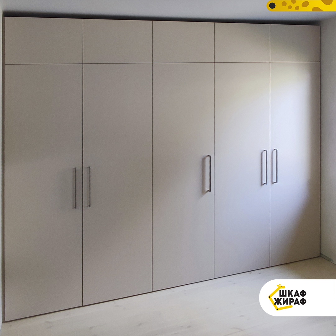 Распашной шкаф в спальню. Фасады из ДСП цвета Сатин.