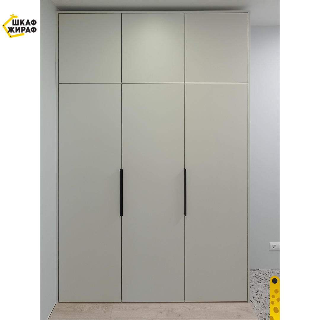 Распашной шкаф с дверьми из ДСП Egger цвета Серый Шелк и черными матовыми ручками HEXA.