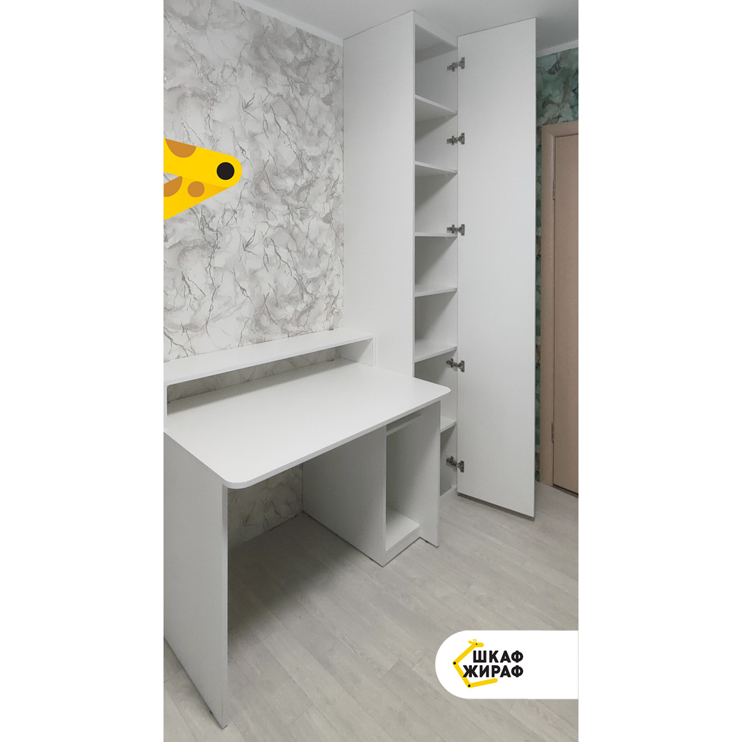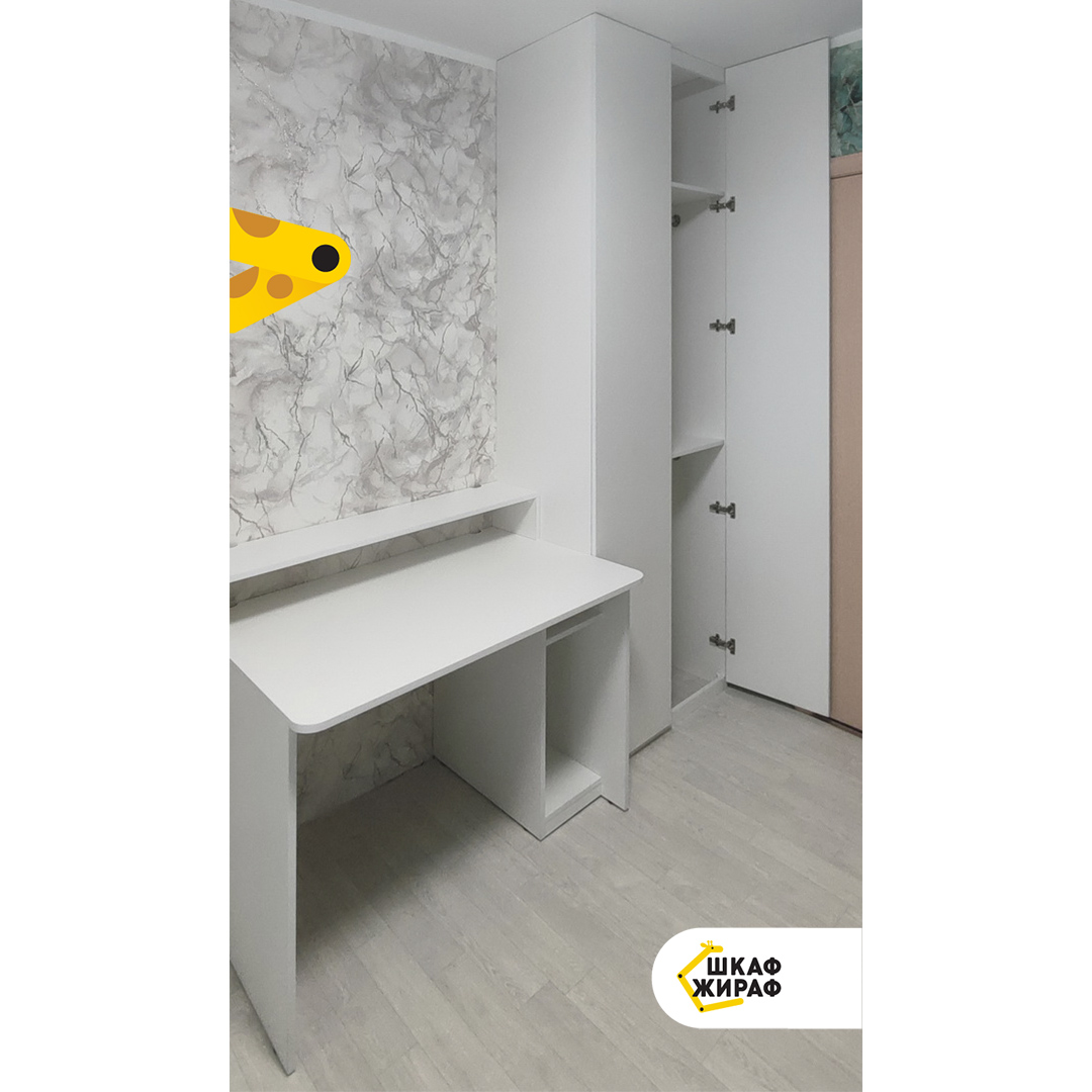 Распашной шкаф для удобного хранения вещей и компьютерный стол для продуктивной работы.