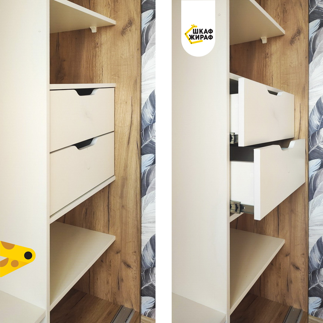 Стандартное и индивидуальное наполнение шкафов - полки, штанги, выдвижные ящики, корзины, пантографы и др. Можно выбрать любую комплектацию.