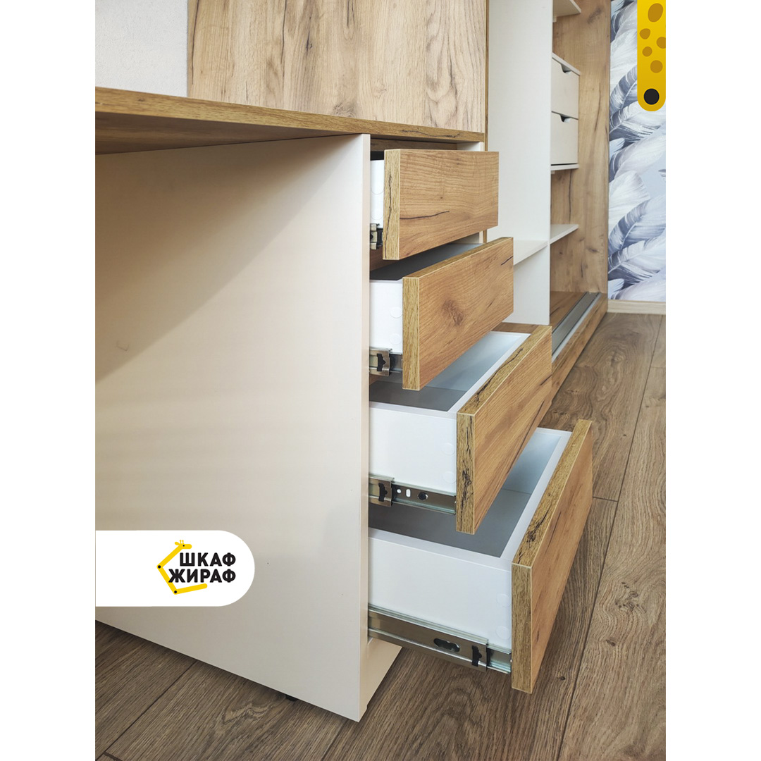 Наружная часть — ДСП Egger 18 мм Крем Бежевый и ДСП Krono 18 мм Дуб Крафт Золотой в кромке ПВХ.