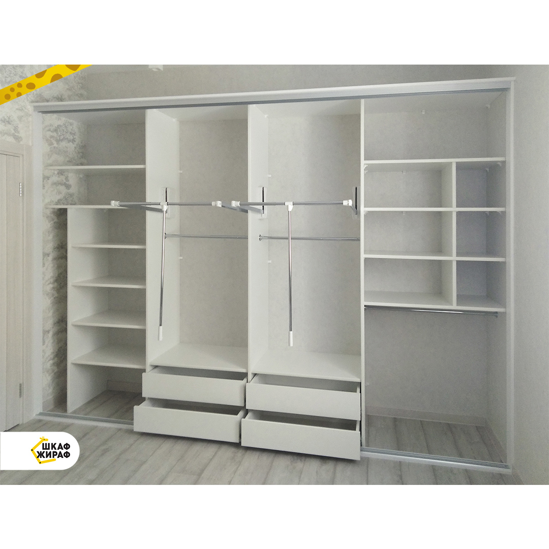 Стандартное и индивидуальное наполнение шкафов - полки, штанги, выдвижные ящики, корзины, пантографы и др. Можно выбрать любую комплектацию.