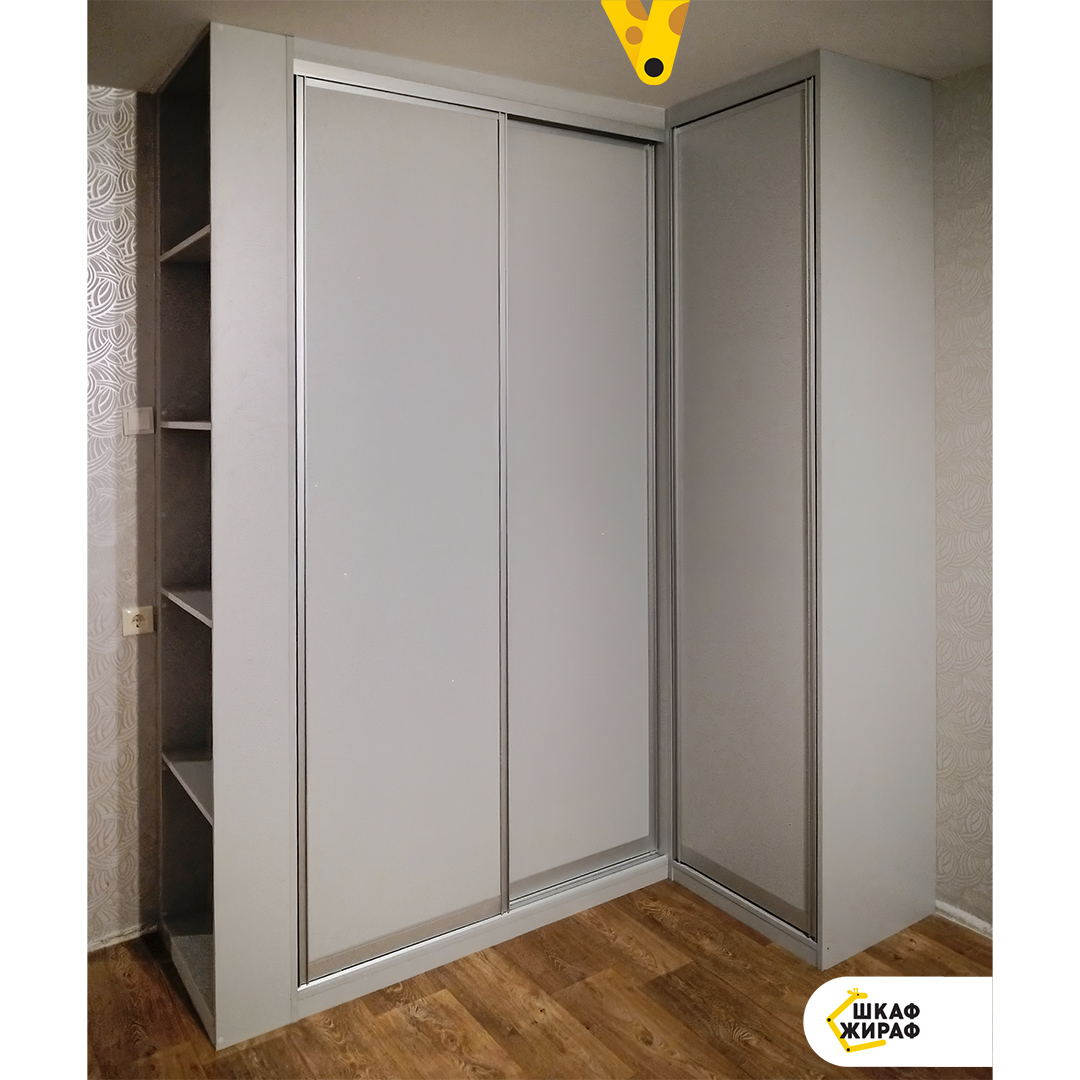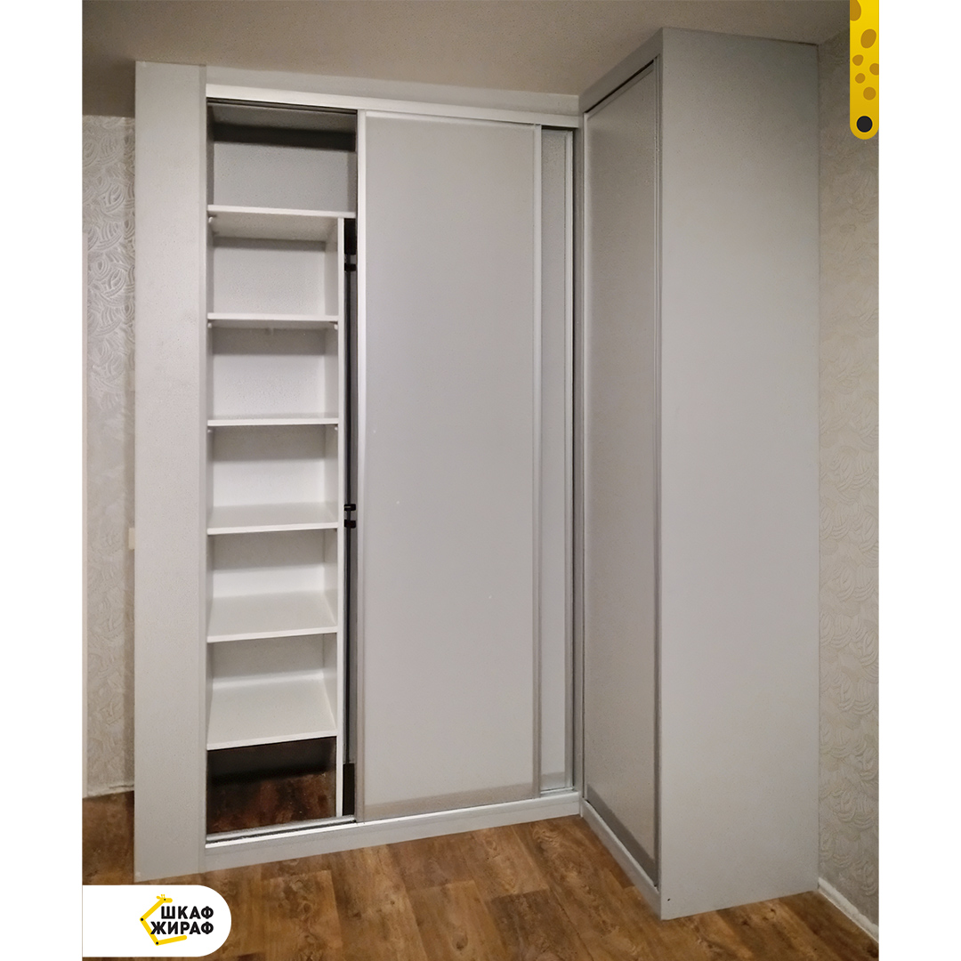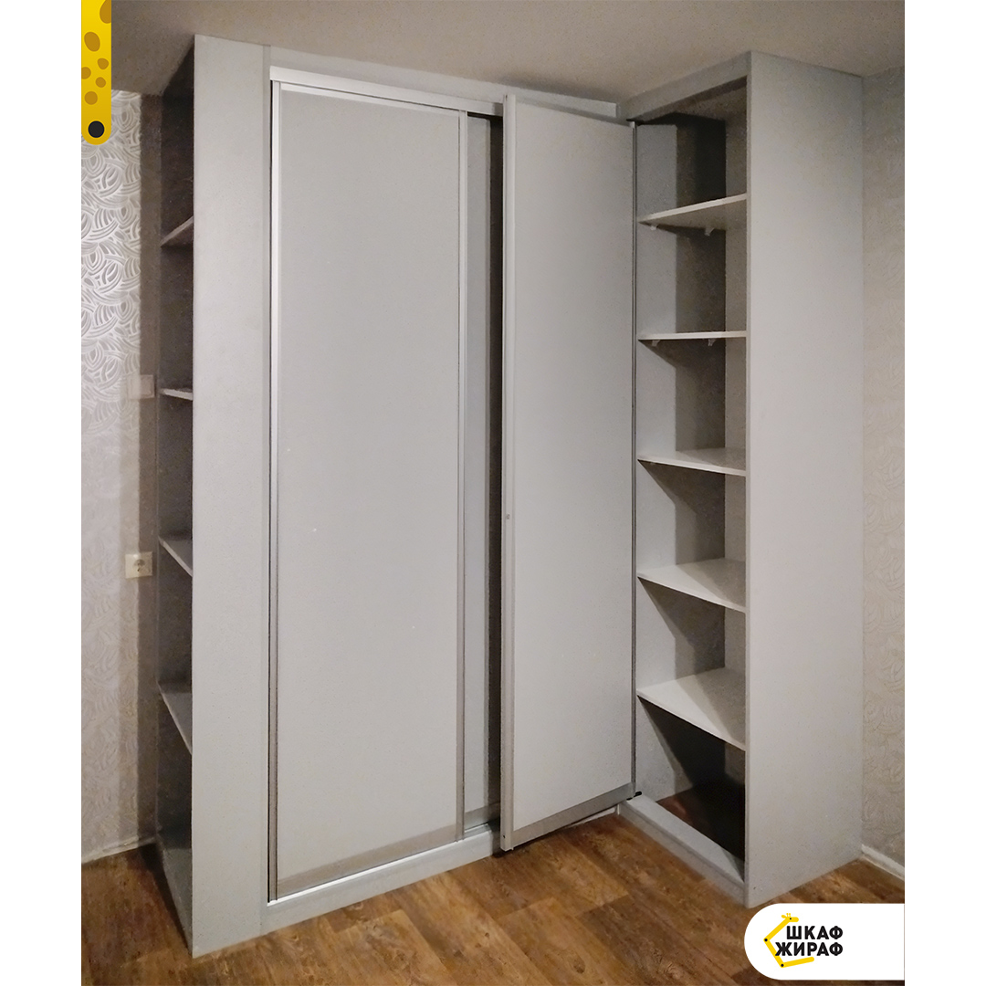 Угловой Г-образный шкаф с сегментом открытых полок.