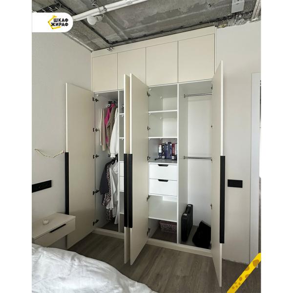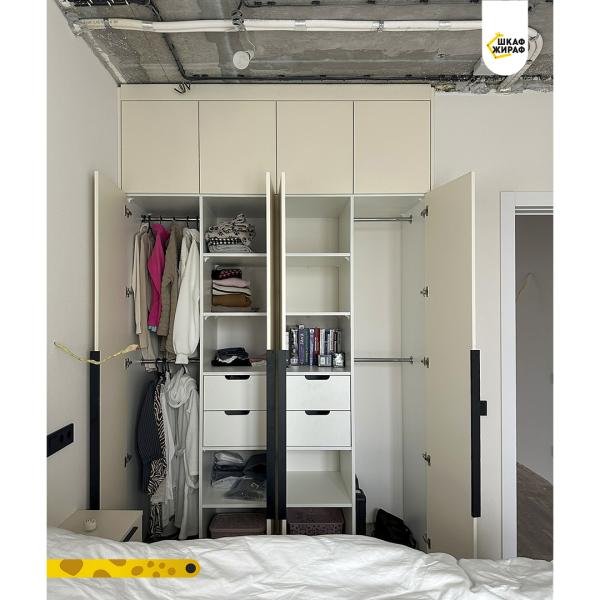 По индивидуальному проекту с полками, штангами для одежды, выдвижными ящиками и антресолями.