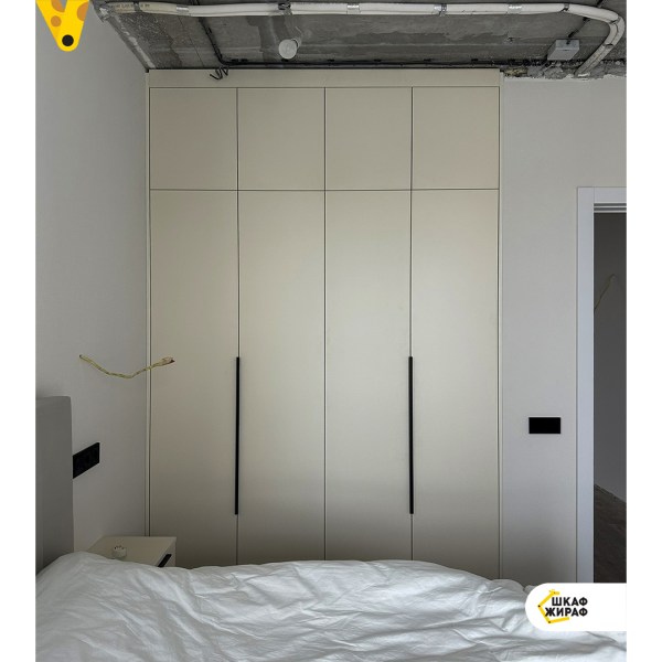 Встроенный распашной шкаф на 4 двери и подвесные тумбы в спальню.