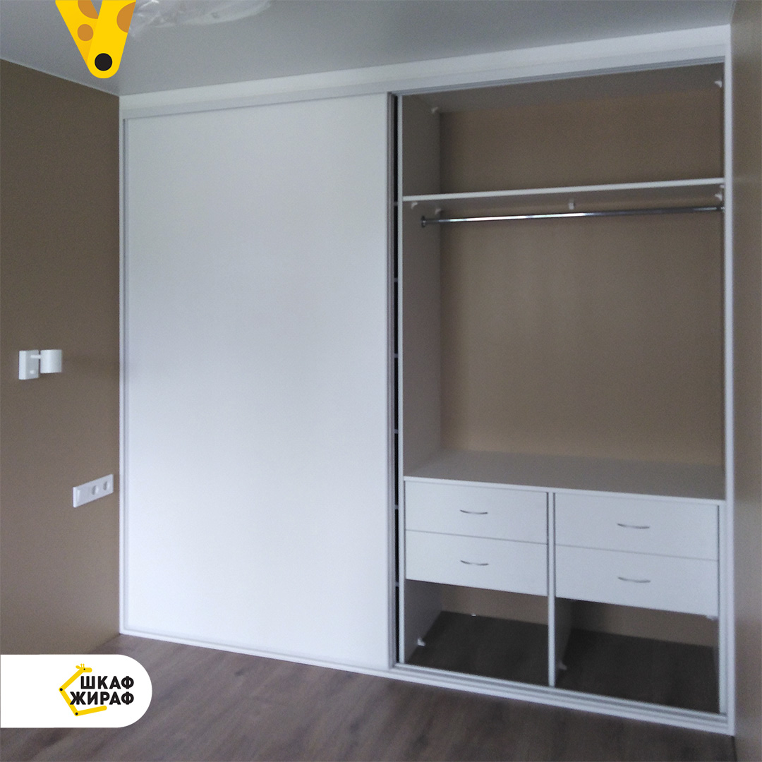 Корпус шкафов выполняем из ДСП разных цветов. Работаем с проверенными брендами Kronospan, Kronopol, Egger. Используем надежный алюминиевый профиль Modus. Предлагаем большой выбор материалов для фасада — зеркала, лакобель, лакомат, ДСП, кожа.