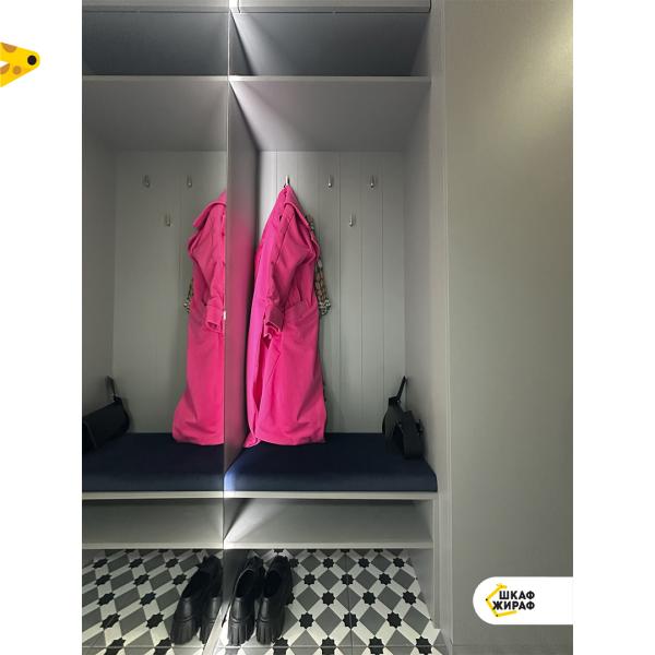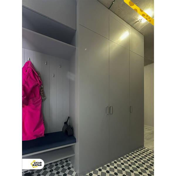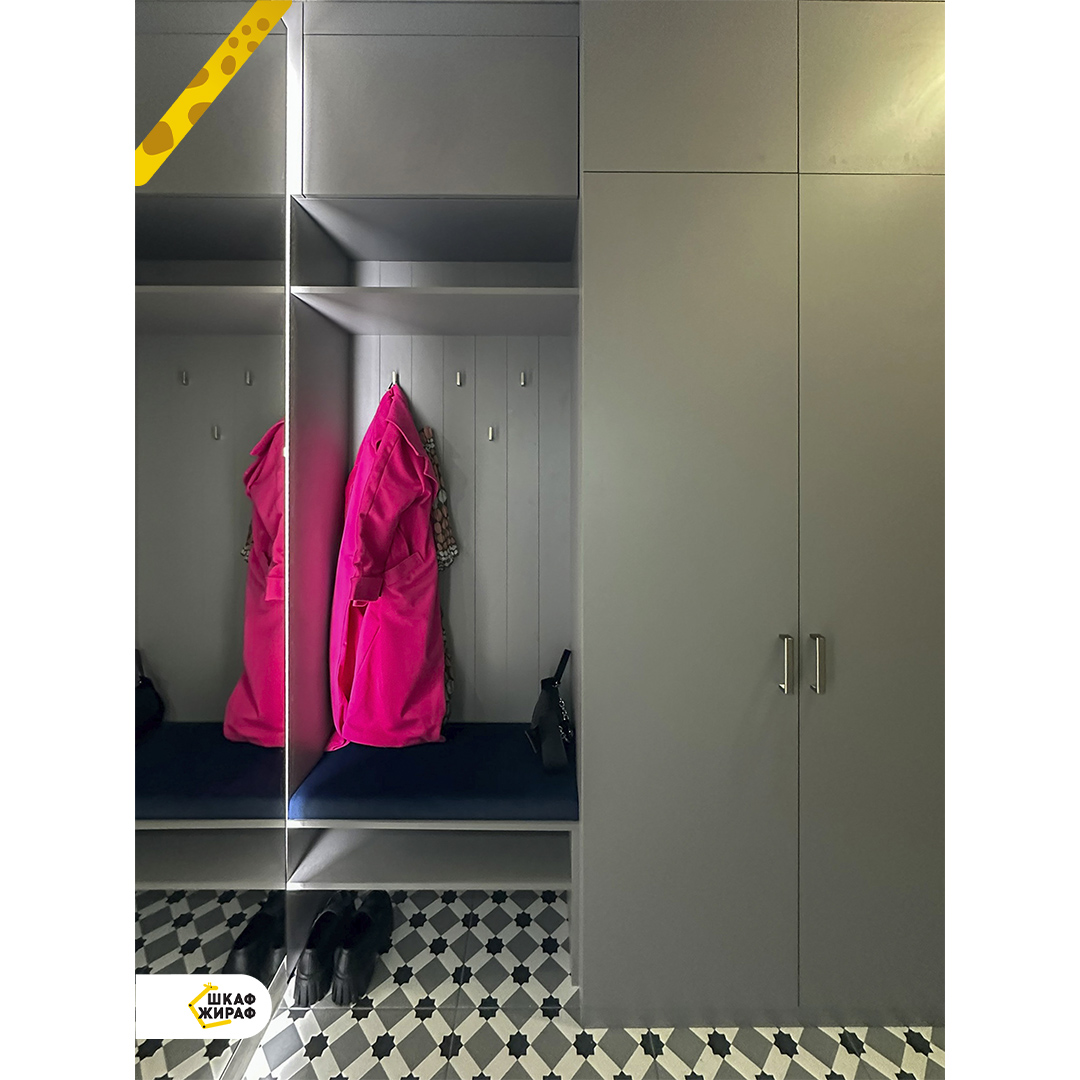Классная прихожая в трендовом сером цвете с мягким элементом