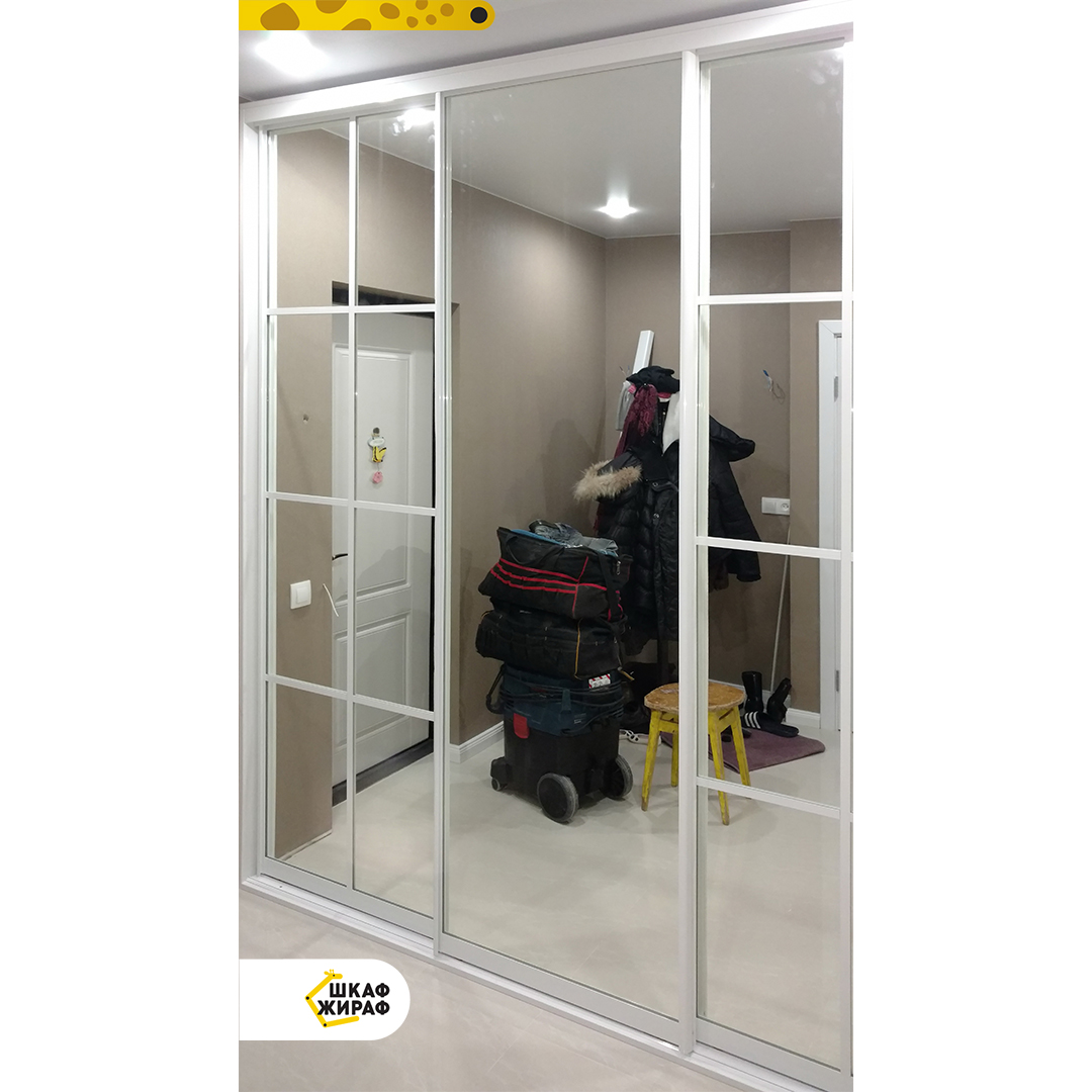Встроенный зеркальный шкаф-купе с крышей и белым открытым профилем Modus.